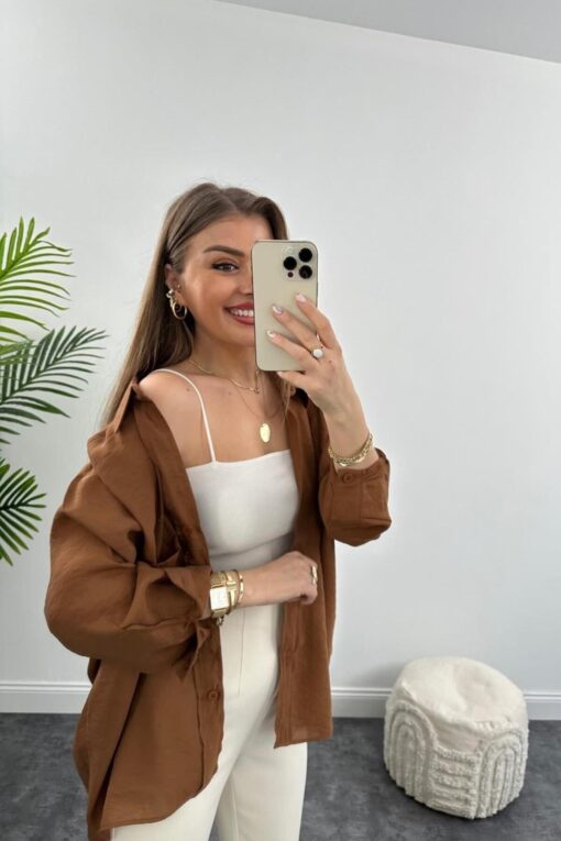 Maxi İdol Lüx Kalite Basic Salaş Gömlek Kahve