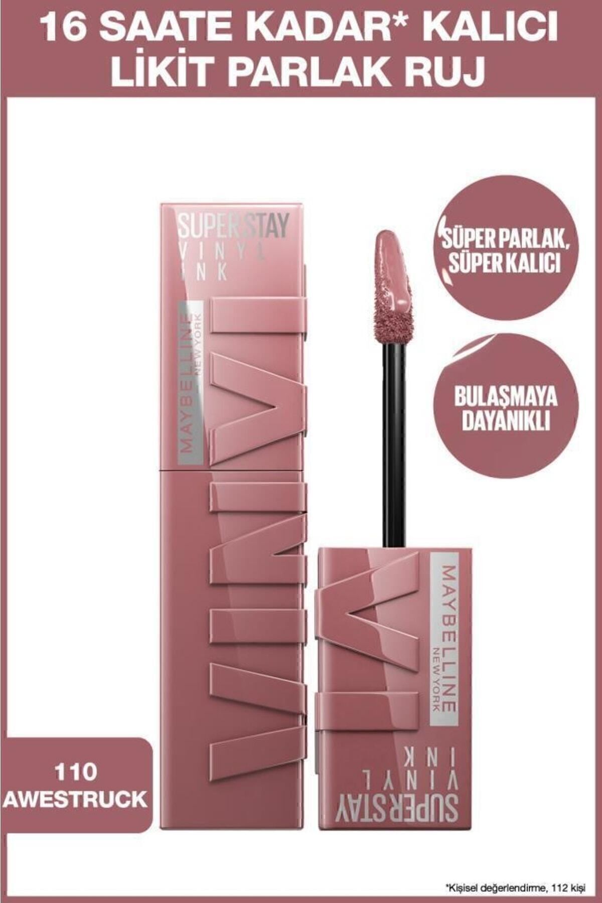 Maybelline New York Super Stay Vinyl Ink Uzun Süre Kalıcı Likit Parlak Ruj 110 Awestruck