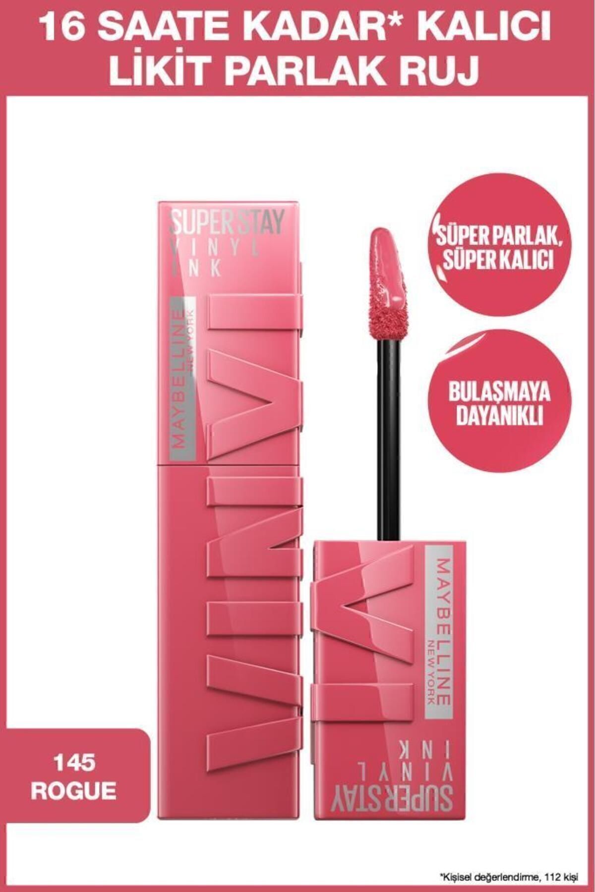 Maybelline New York Super Stay Vinyl Ink Uzun Süre Kalıcı Likit Parlak Ruj 145 Rogue