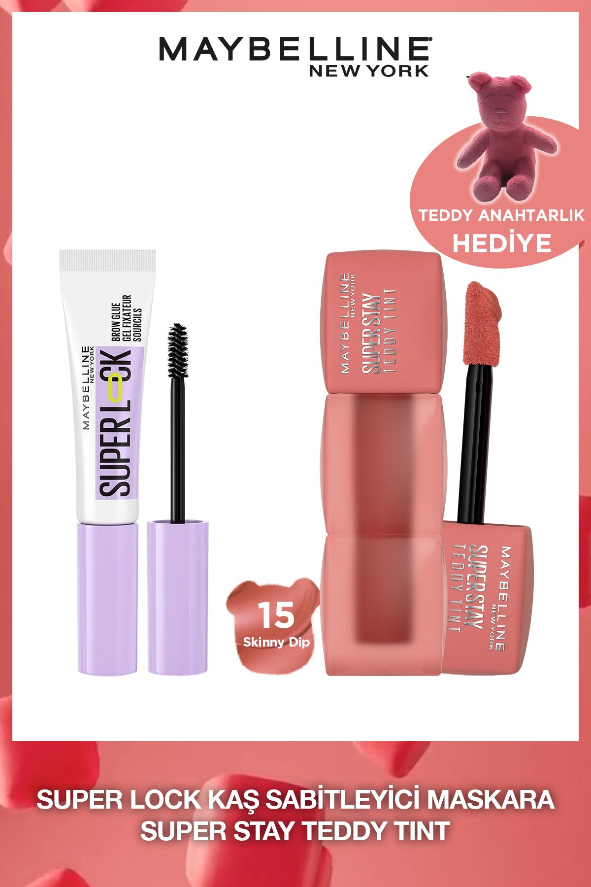 Maybelline New York Teddy Tint Likit Mat Tint 15 Skinny Dip & Super Lock Brow Glue Kaş Sabitleyici Anahtarlık Hediyeli