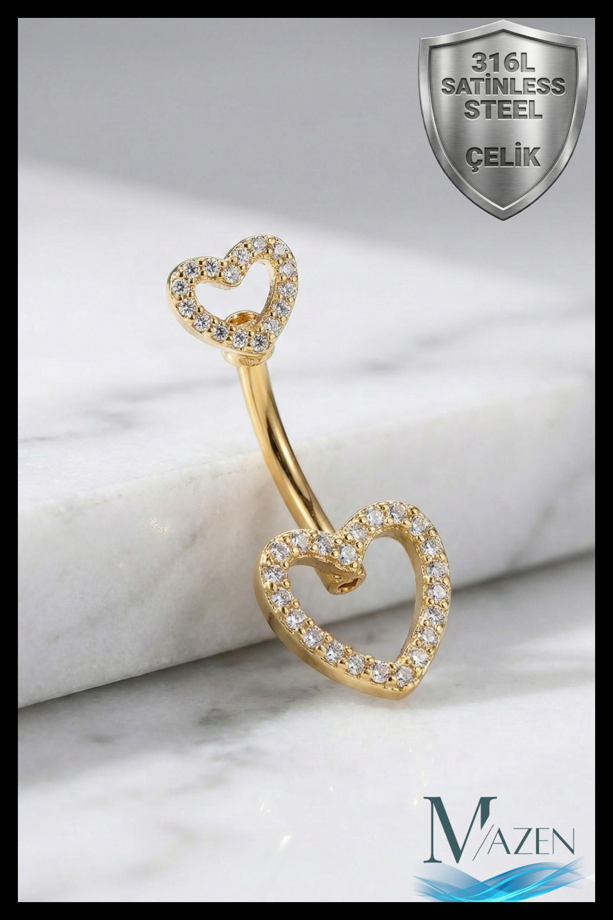 MAZEN 316L Cerrahi Çelik Zirkon Taşlı Çift Kalp Figürlü Göbek Piercingi ürününü en uygun fiyata kozmetikara.com sitemizden sipariş verebilirsiniz.