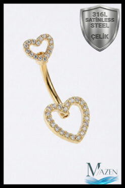 MAZEN 316L Cerrahi Çelik Zirkon Taşlı Çift Kalp Figürlü Göbek Piercingi