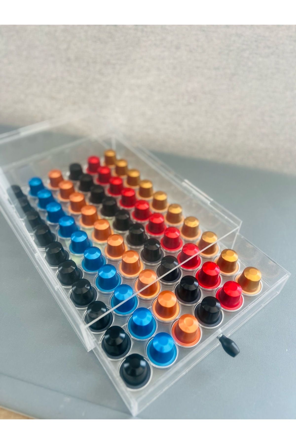 MAZERONREKLAM Kahve Kapsül Çekmecesi - 60’lı Kapasiteli Şeffaf Pleksi Organizer - Nespresso Uyumlu Stand ürünü ucuz fiyat, hızlı kargo ve kredi kartına 12 ay taksit imkanı ile hemen sitemizden sipariş verin.