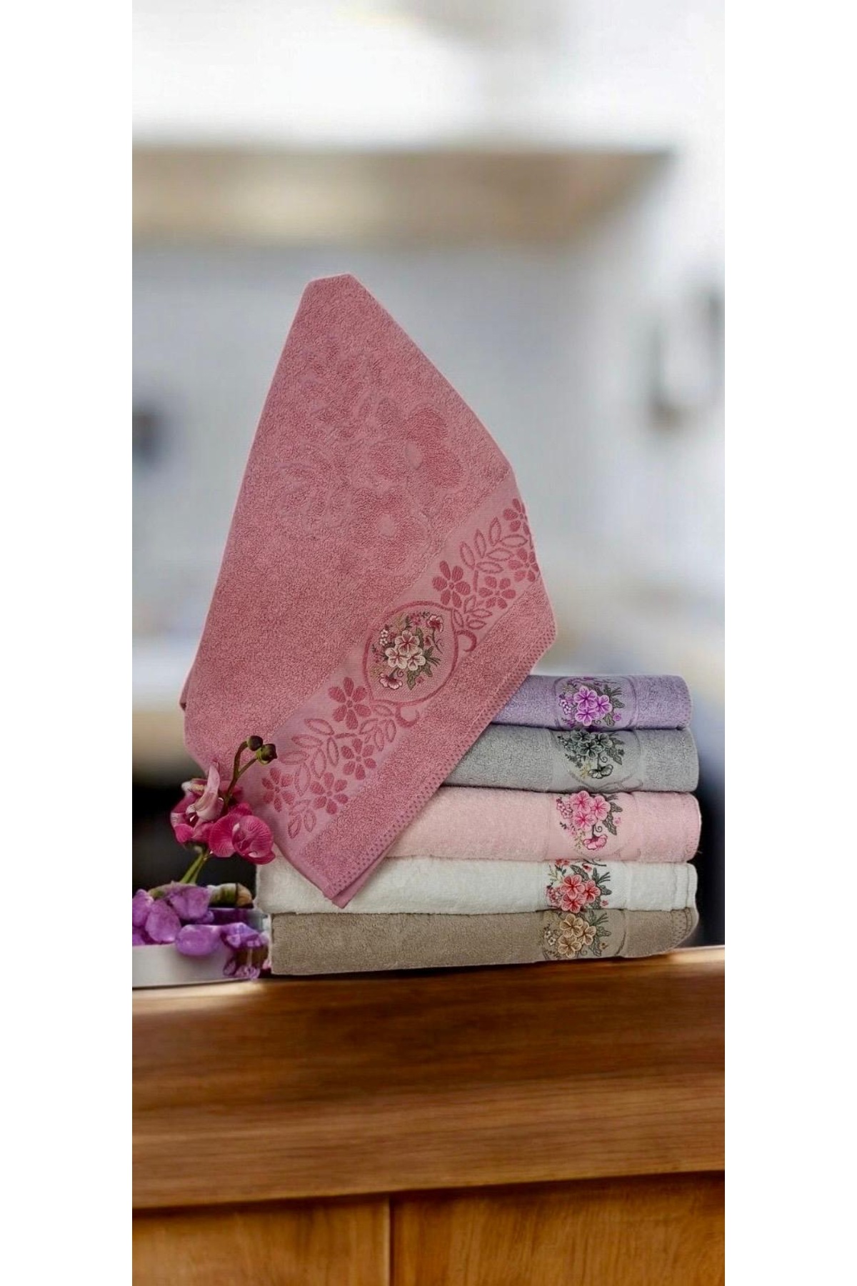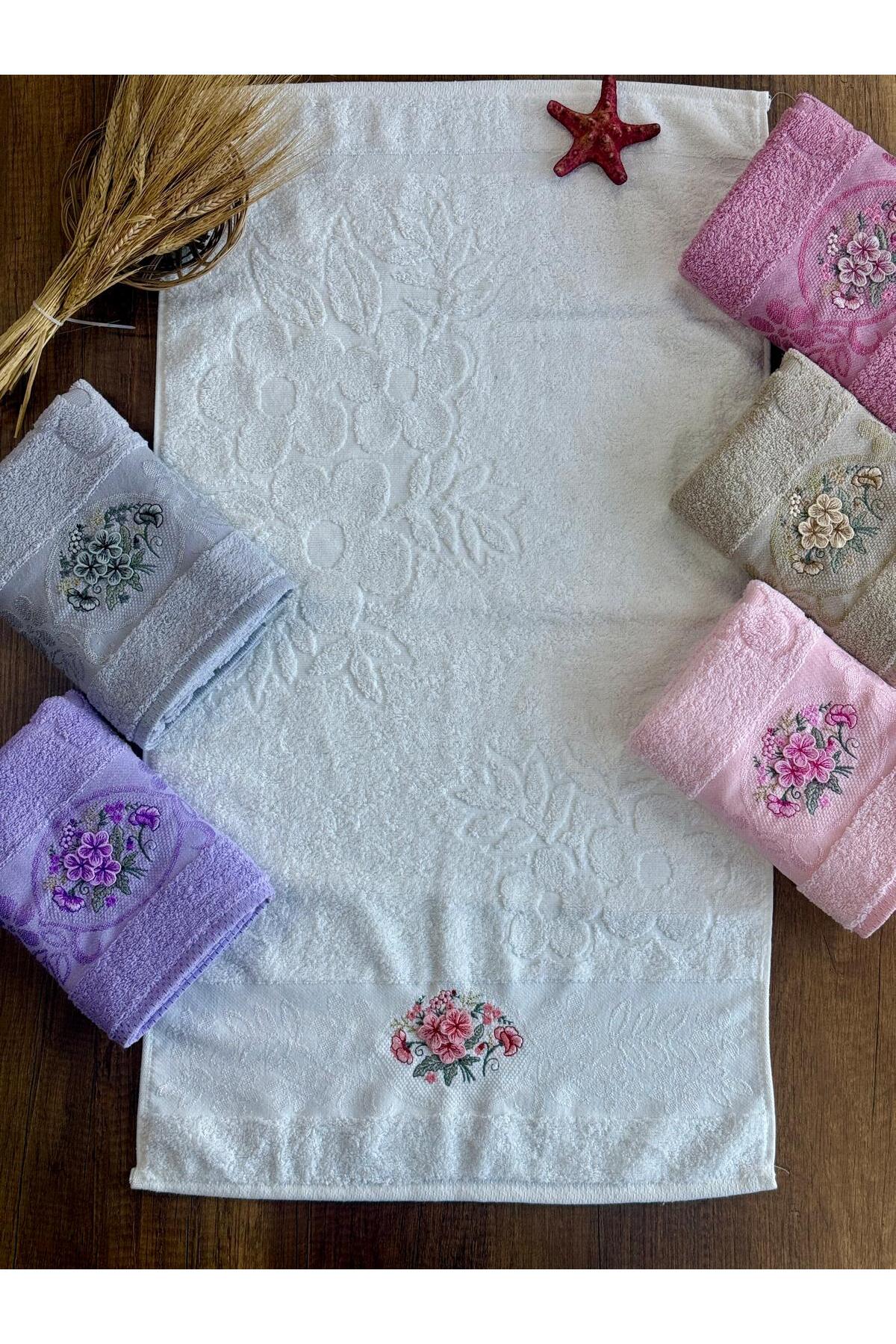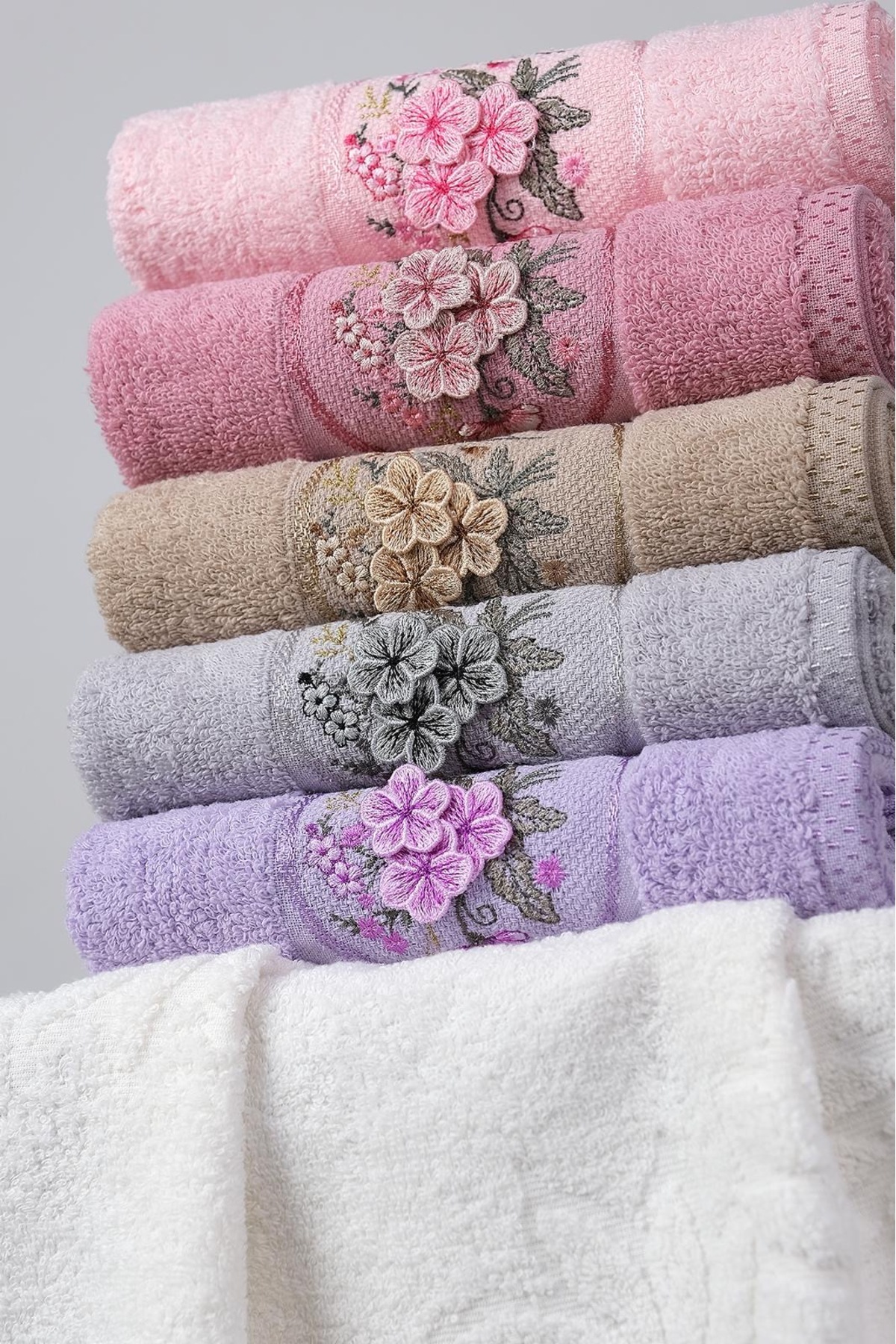 ME-SA LuxuriA Glorya Model 50×90 Çeyizlik Bukle 6 Adet Jakarlı 3D Nakışlı Asortili El Yüz Havlusu