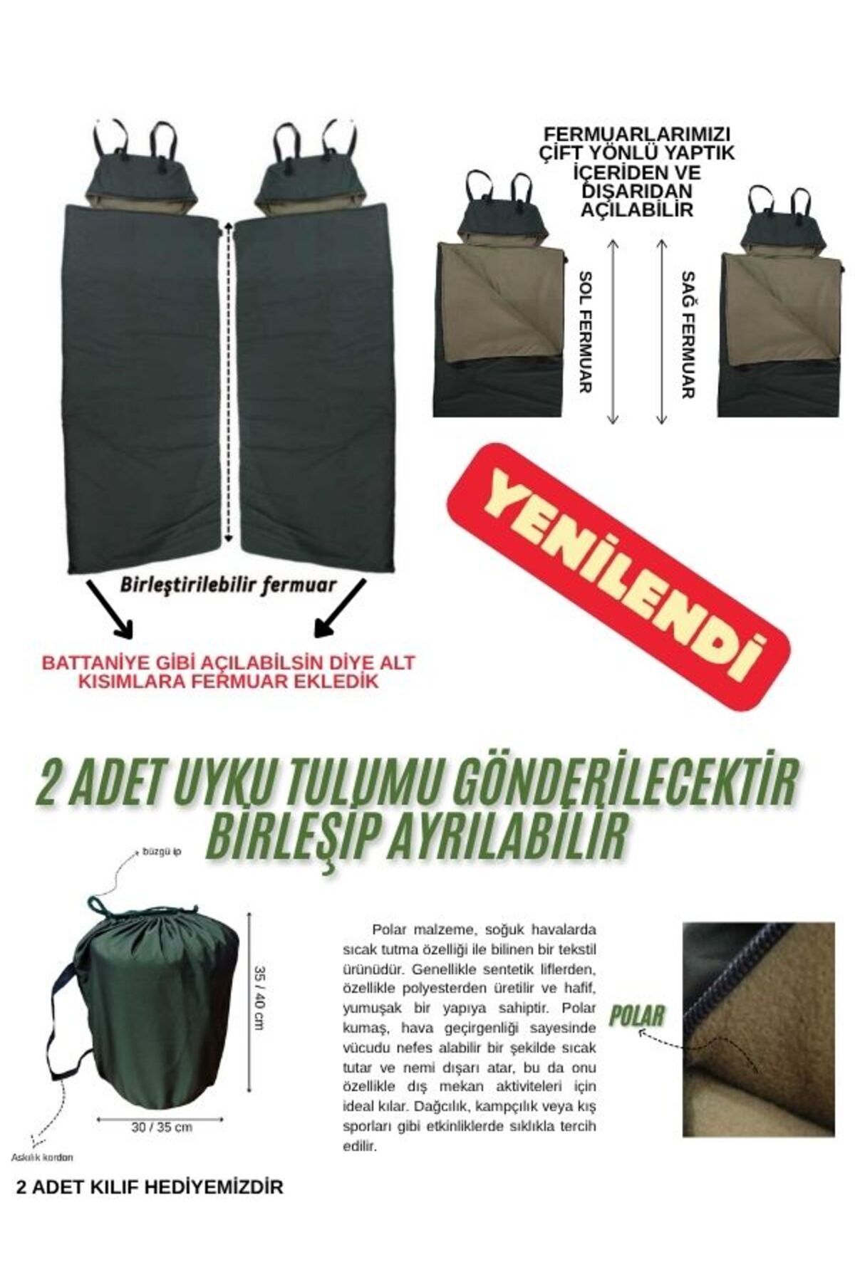 Med Online Çift Kişilik 2’li Birleşip Ayrılabilir Haki Uyku Tulumu (-25) Mikro Su Itici Kamp (2.15×1.50)