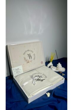 MyStory Home Lastikli Çarşaflı Çift Kişilik Nevresim Takımı Saten Beyaz
