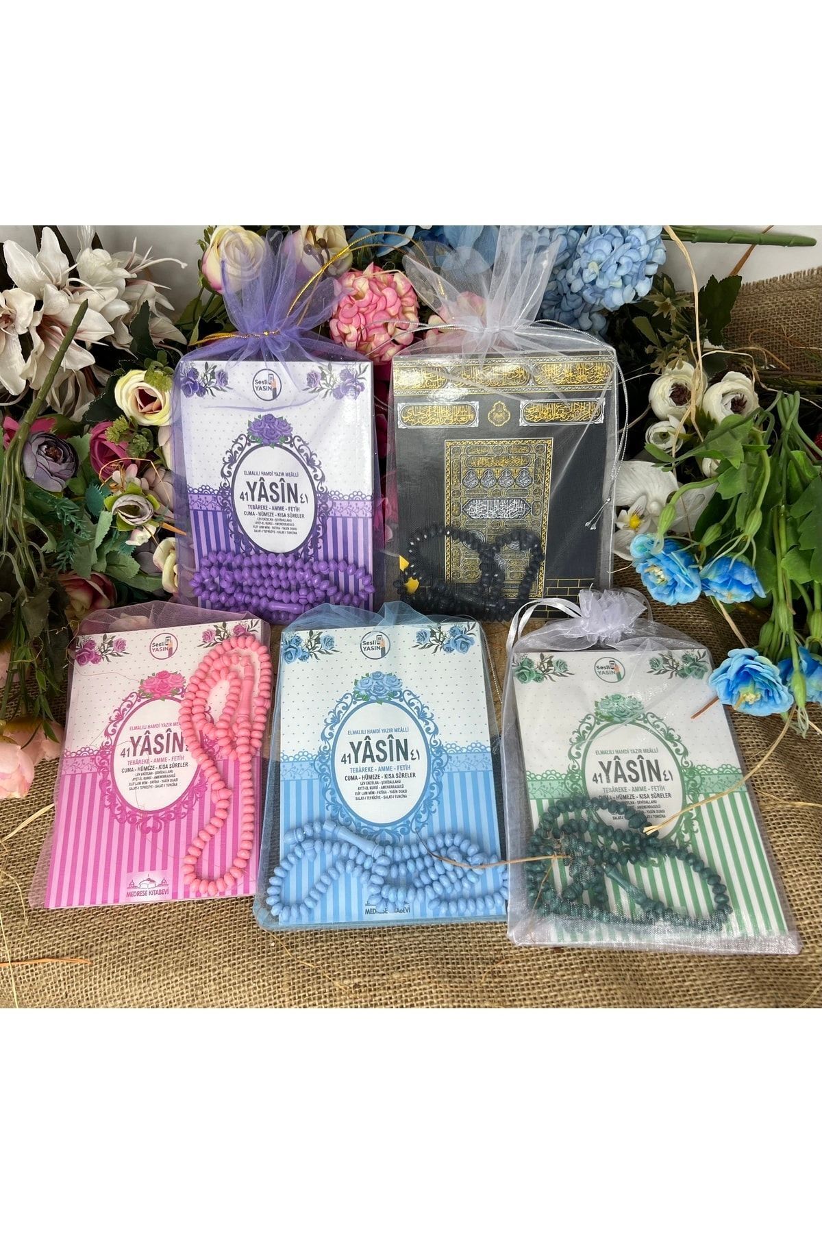 Medrese Yayınları Tül Keseli Yasin Kitabı Cüzü 25’li Karışık Renk Tesbihli Doğum Cenaze Bebek Mevlüt Hediyeliği