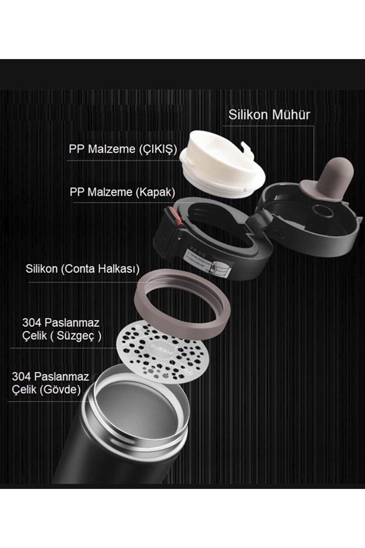 megame Thermoschu Filtreli 304 Paslanmaz Çelik Çift Katmanlı 380 ml Termos Bardak