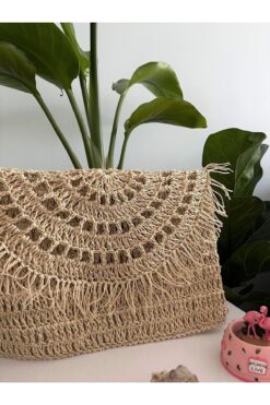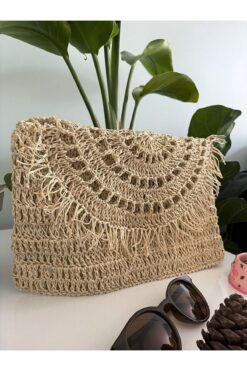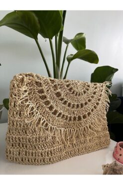 MegCase Kağıt İp Hasır Püsküllü Dikdörtgen El Yapımı Çanta