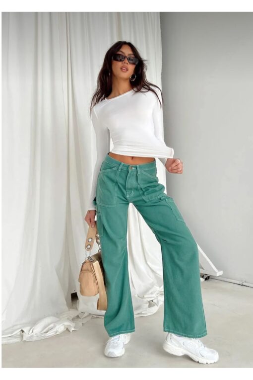 macharel jeans kadın dar paça pileli kemerli mevsimlik kumaş pantolon lacivert 1,048.25₺