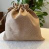 MEKİK BUTİK Bej keten mini bez kese – büzgülü çanta içi düzenleyici – makyaj çantası – 20×20