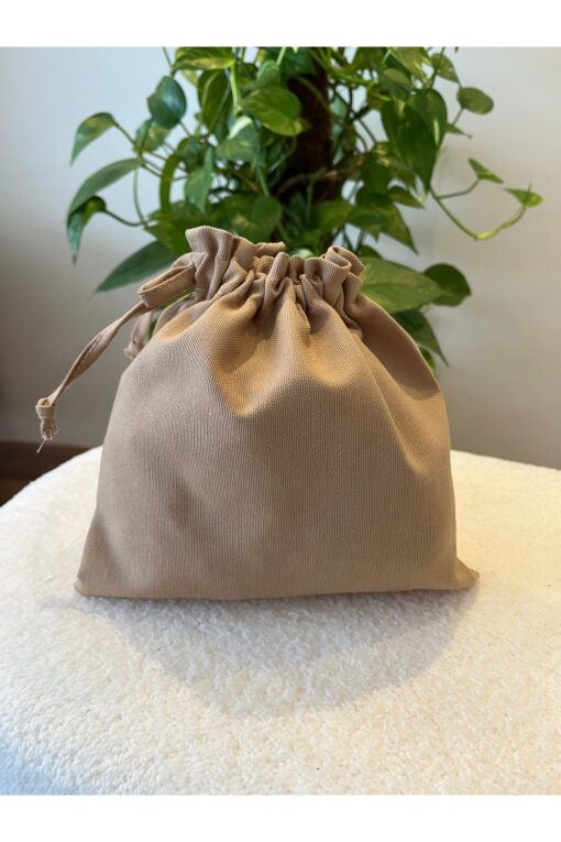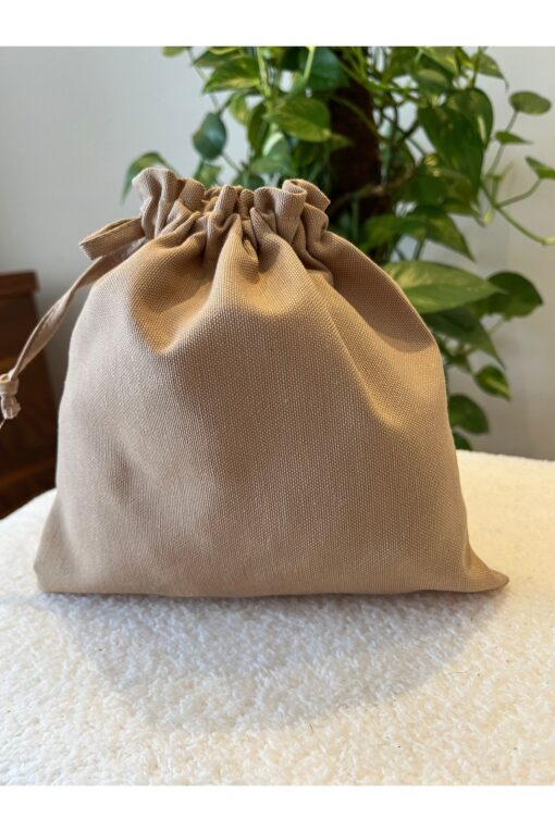 MEKİK BUTİK Bej keten mini bez kese – büzgülü çanta içi düzenleyici – makyaj çantası – 20×20