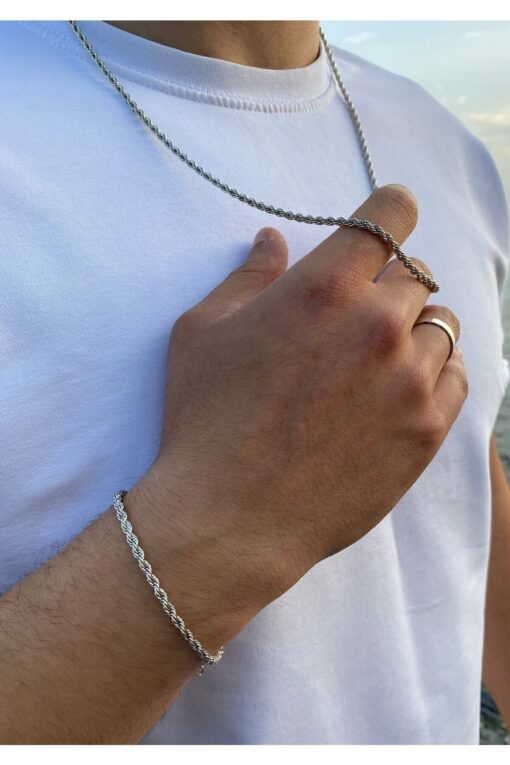 MEKKANMODA Erkek Burgu Zincir Kolye Bileklik Set