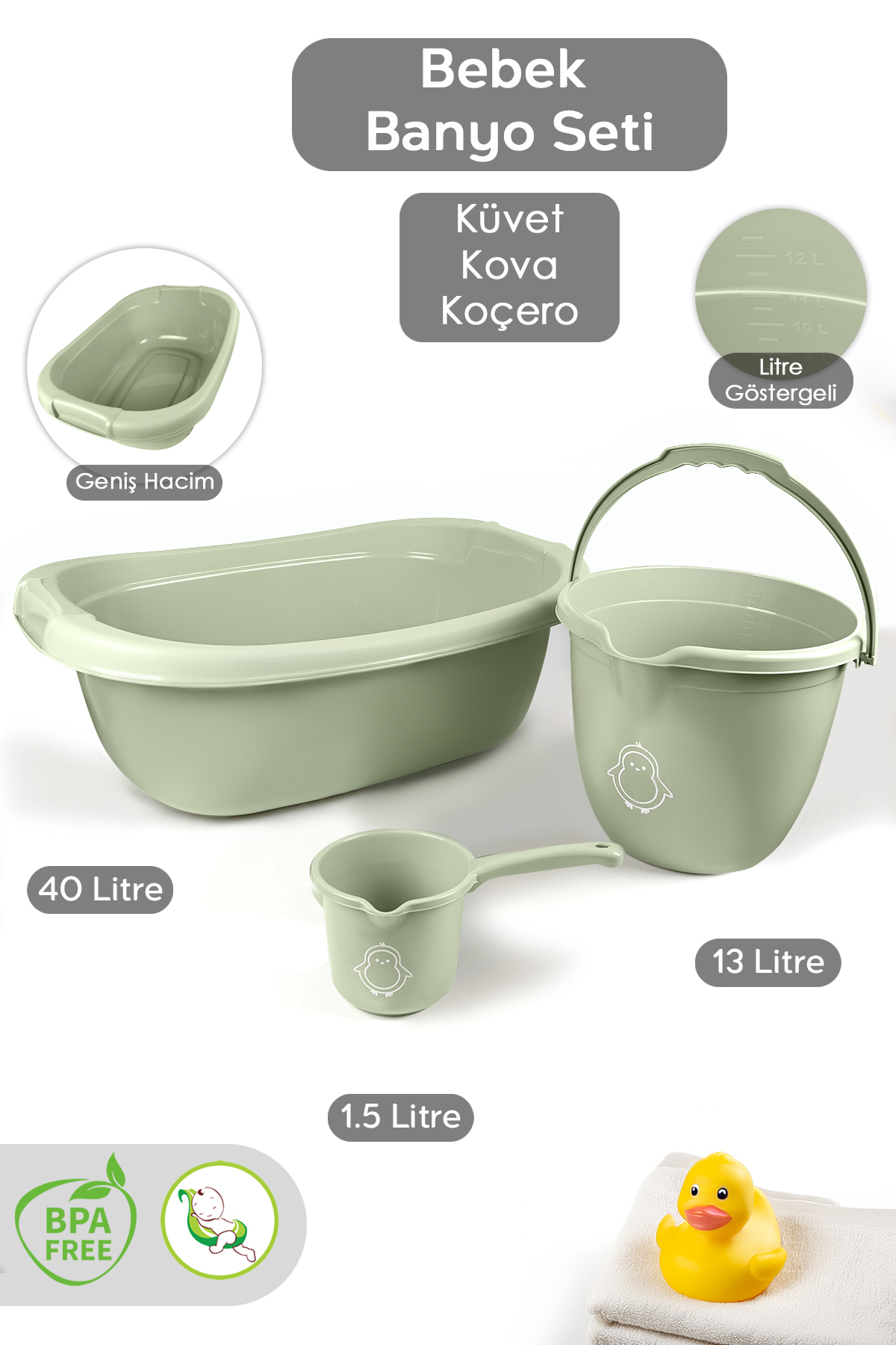 Meleni Baby 3’lü Bebek Banyo Seti - Bebek Yıkama Küveti - Su Kovası - Maşrapa - Yeşil ürünü ucuz fiyat, hızlı kargo imkanı ile hemen sitemizden sipariş verin.
