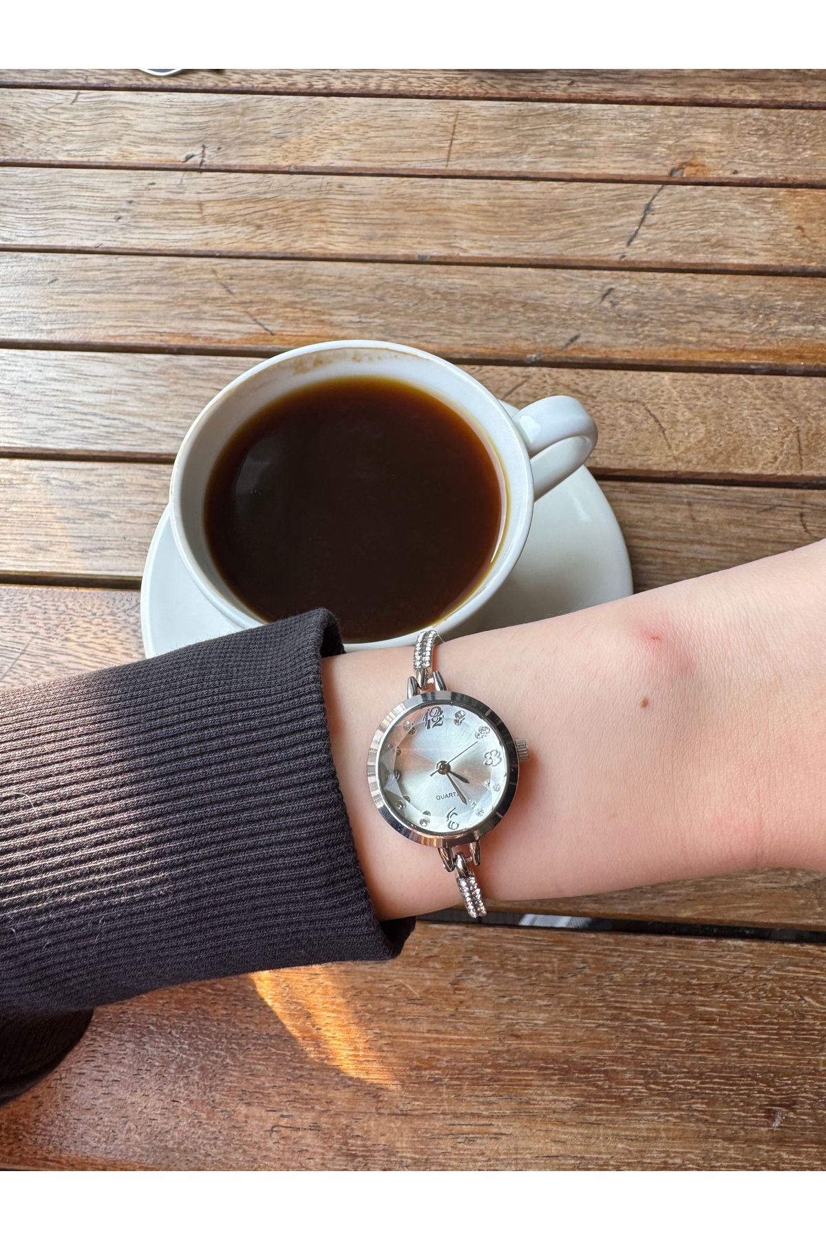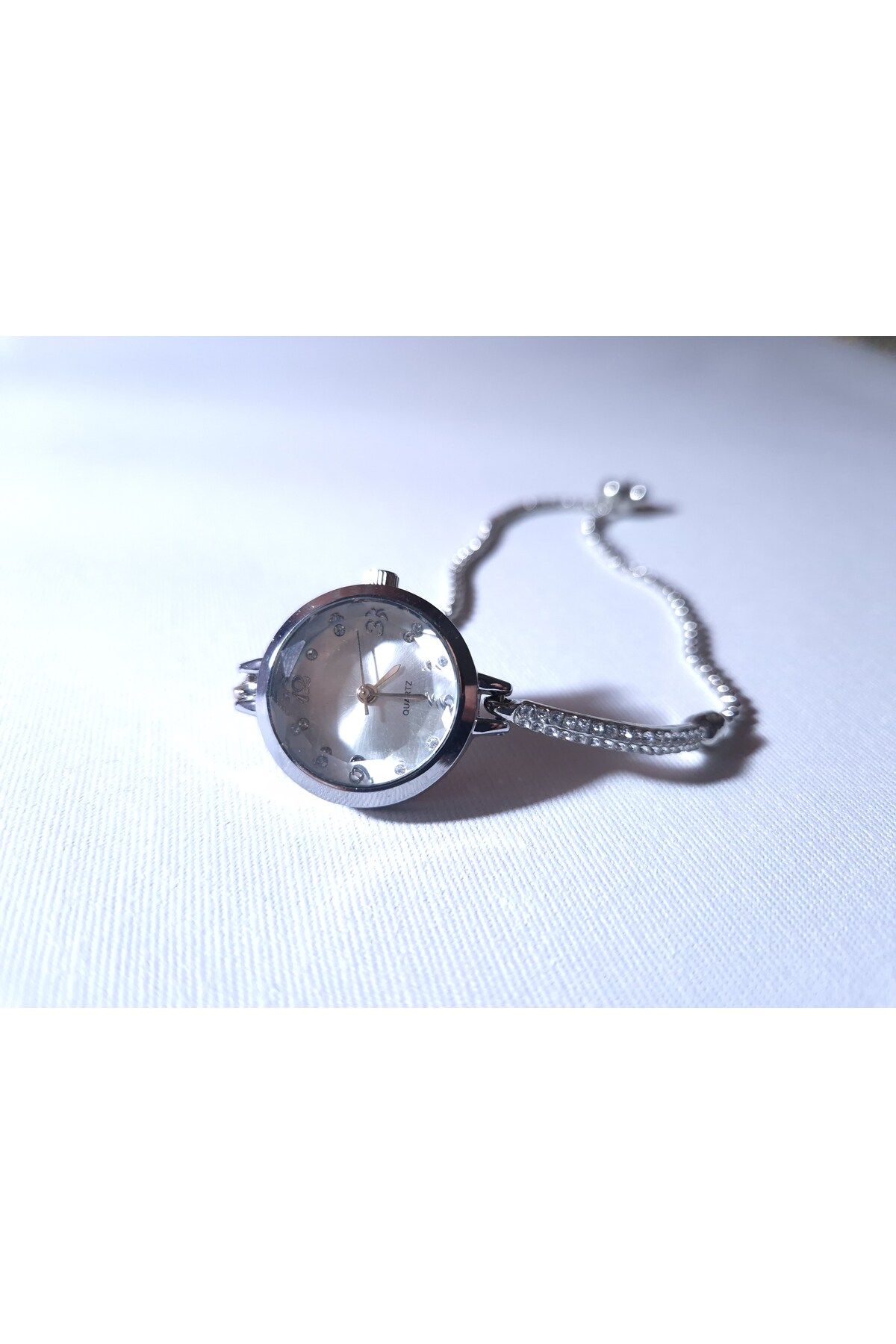 Melinora Pamira Crystal Taşlı İnce Zincir Kordon Yuvarlak Kasa Kadın Kol Saati Gümüş (Kristal Beyaz Kadran)