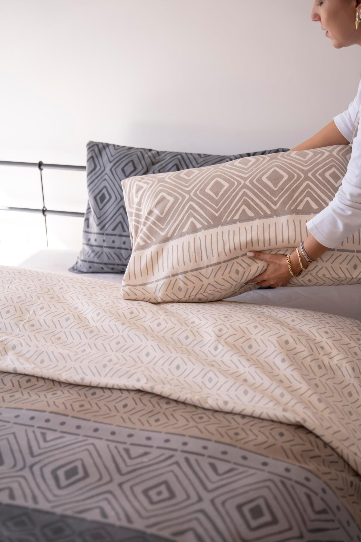 Lotusline Zigzag Desen Lüks Pamuklu Tek Kişilik Nevresim Seti