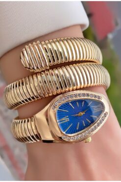 Merand Altın Renk Yılan Saat, Dolamalı Saat, Kadın Kol Saati