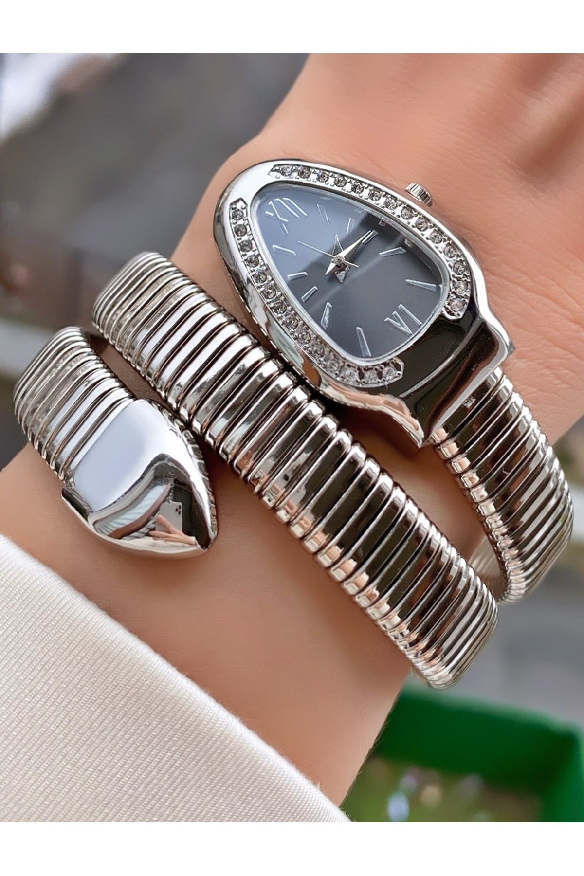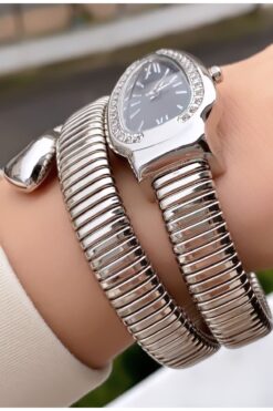 Merand Gümüş Renk Yılan Saat, Dolamalı Saat, Kadın Kol Saati