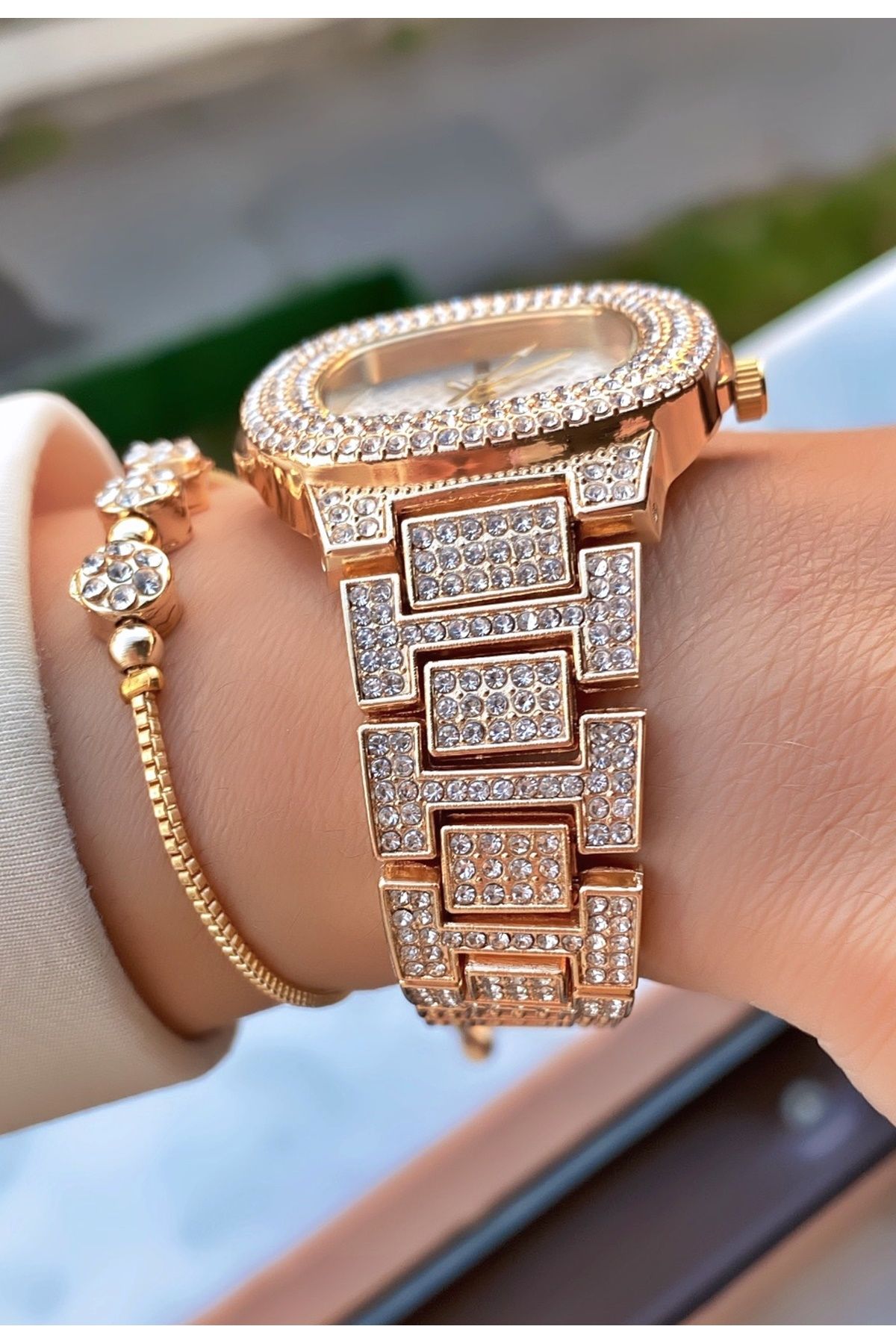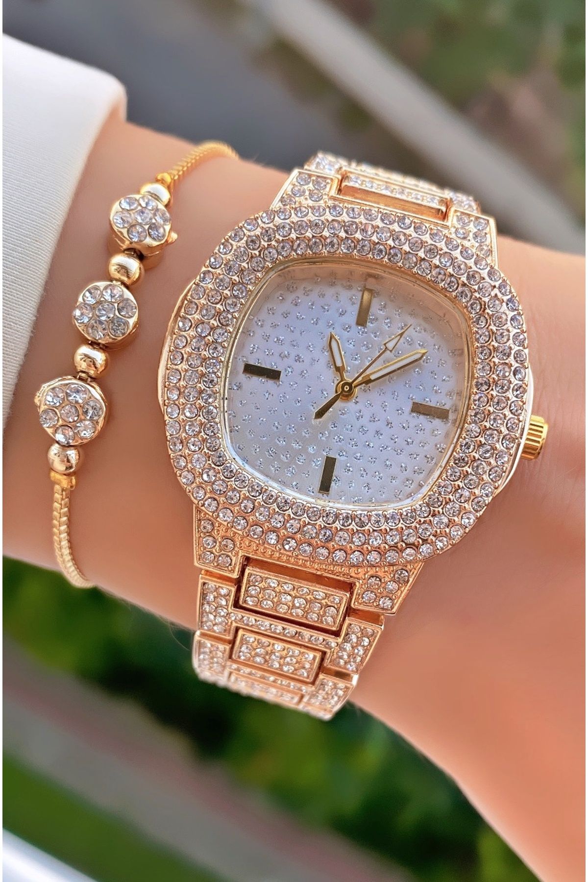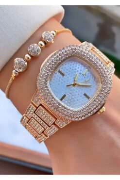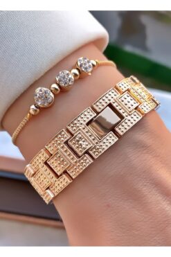 Merand Marka Altın Renk Taşlı Özel Seri Kadın Kol Saati – Bileklik Hediyeli