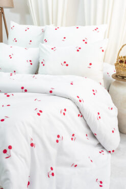 Mercury Çift Kişilik Kiraz Desen Pamuklu Nevresim Seti (çarşafsız)