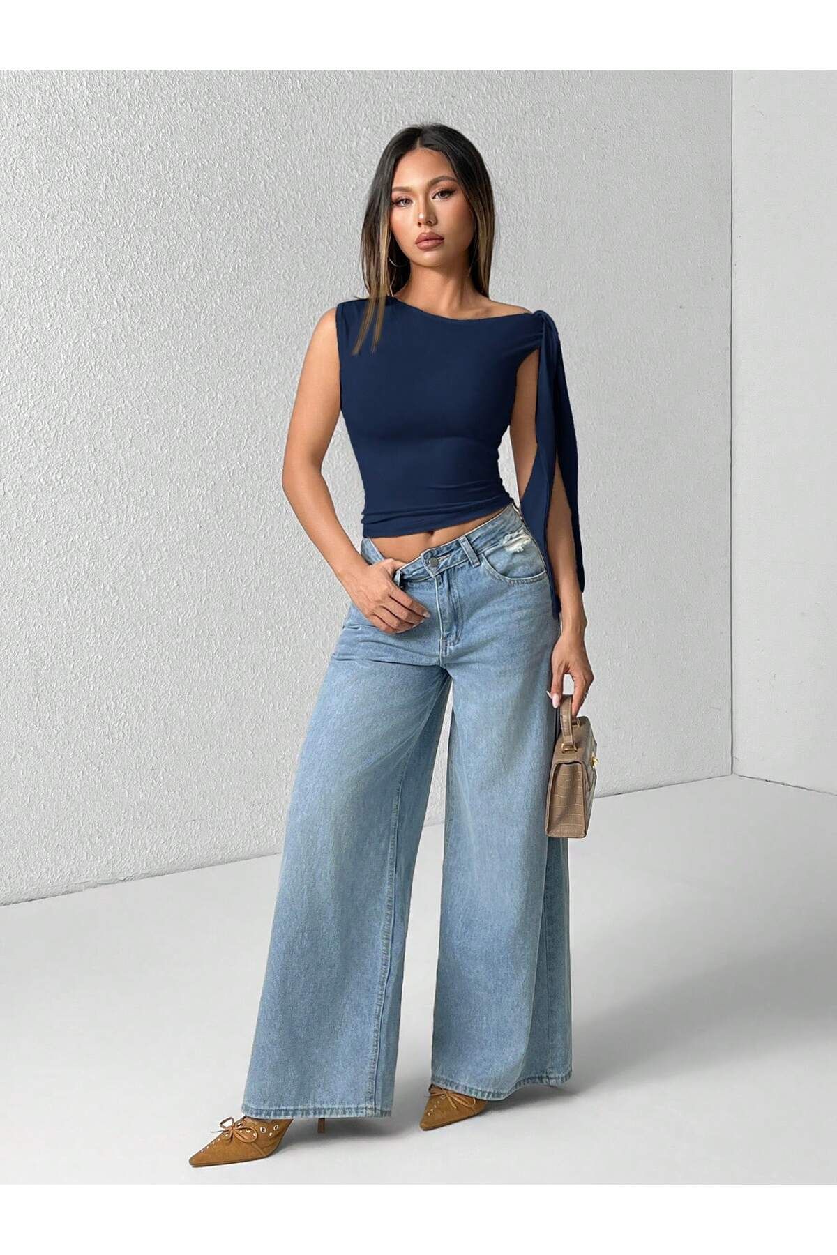 meren like your style lacivert uzun Kolsuz Atlet Üstü Yaz Modasi omuzu baglama detayli