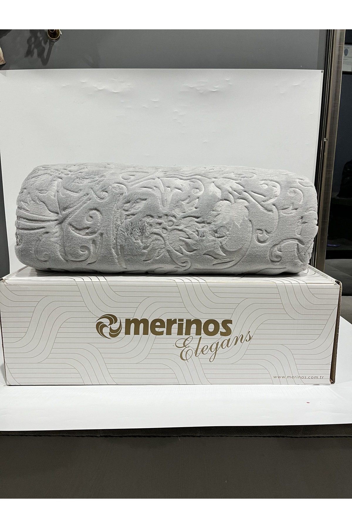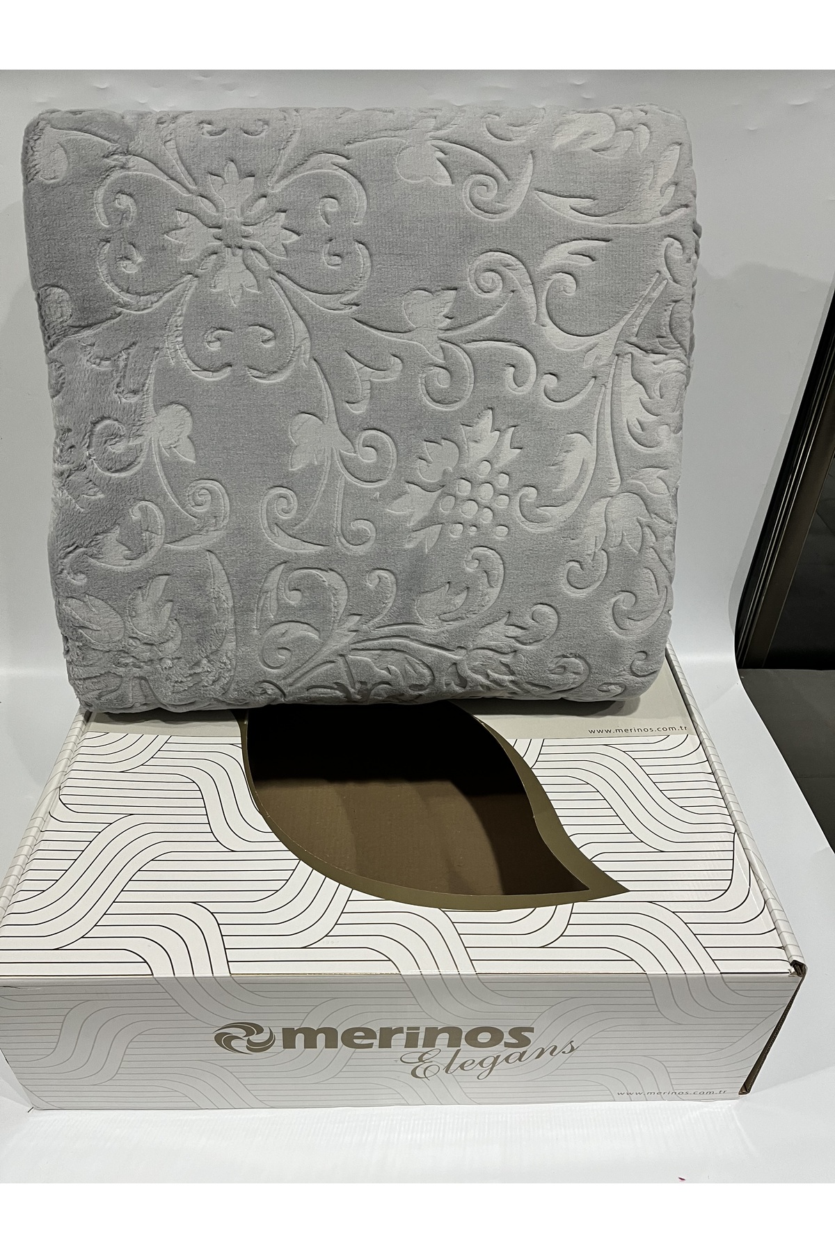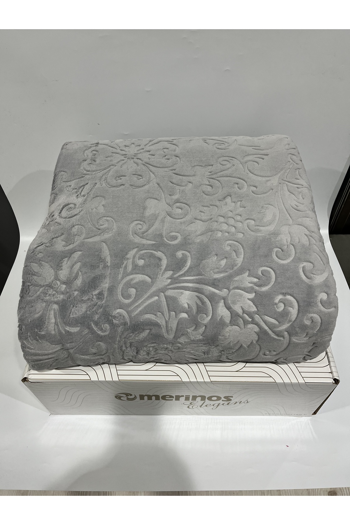Merinos Ekru Pırıltı Çift Kişilik Embos Battaniye Kemik Silver