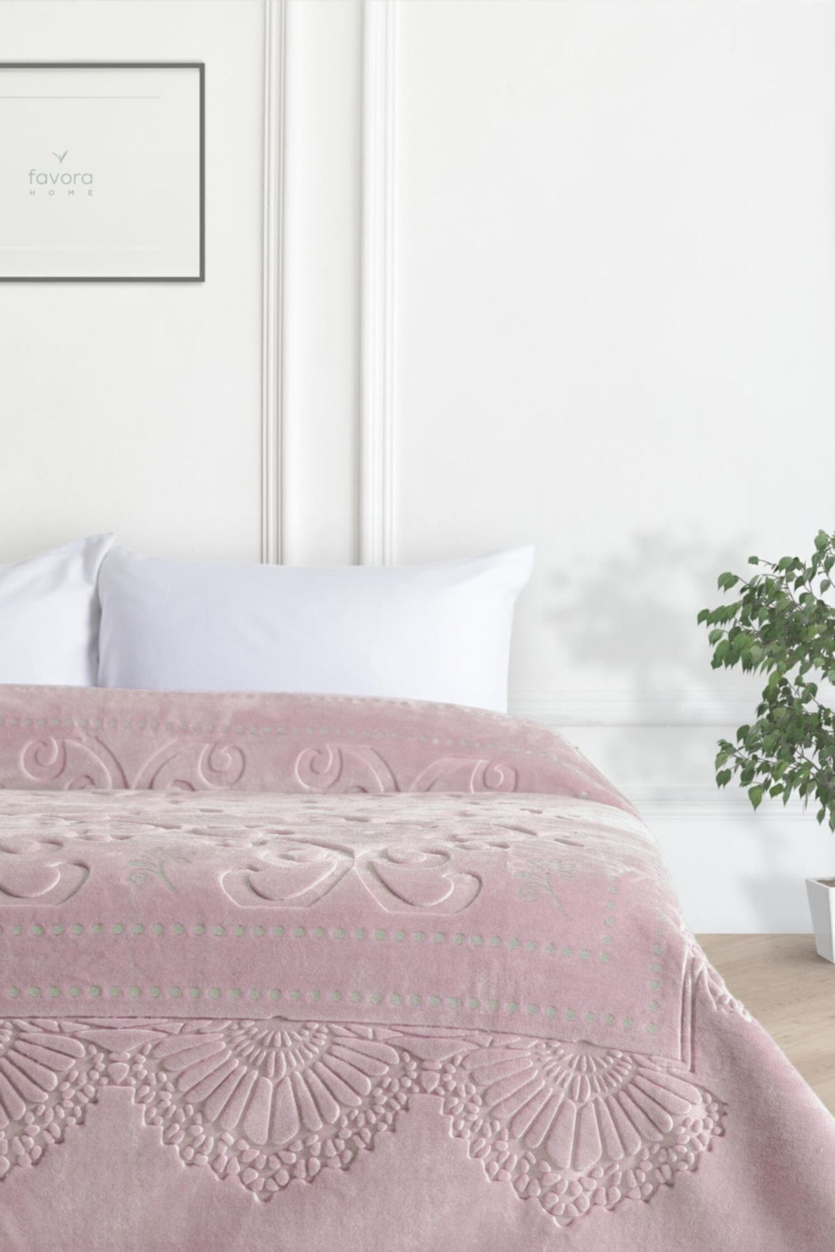 Merinos Pırıltı Embos Çift Kişilik Battaniye – Pudra.