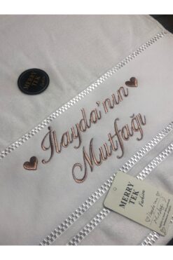 MERRYTEK Fashion İsimli Gelin Mutfak Havlusu Rosegold Bakır sim Metalik Nakışlı 50x90cm
