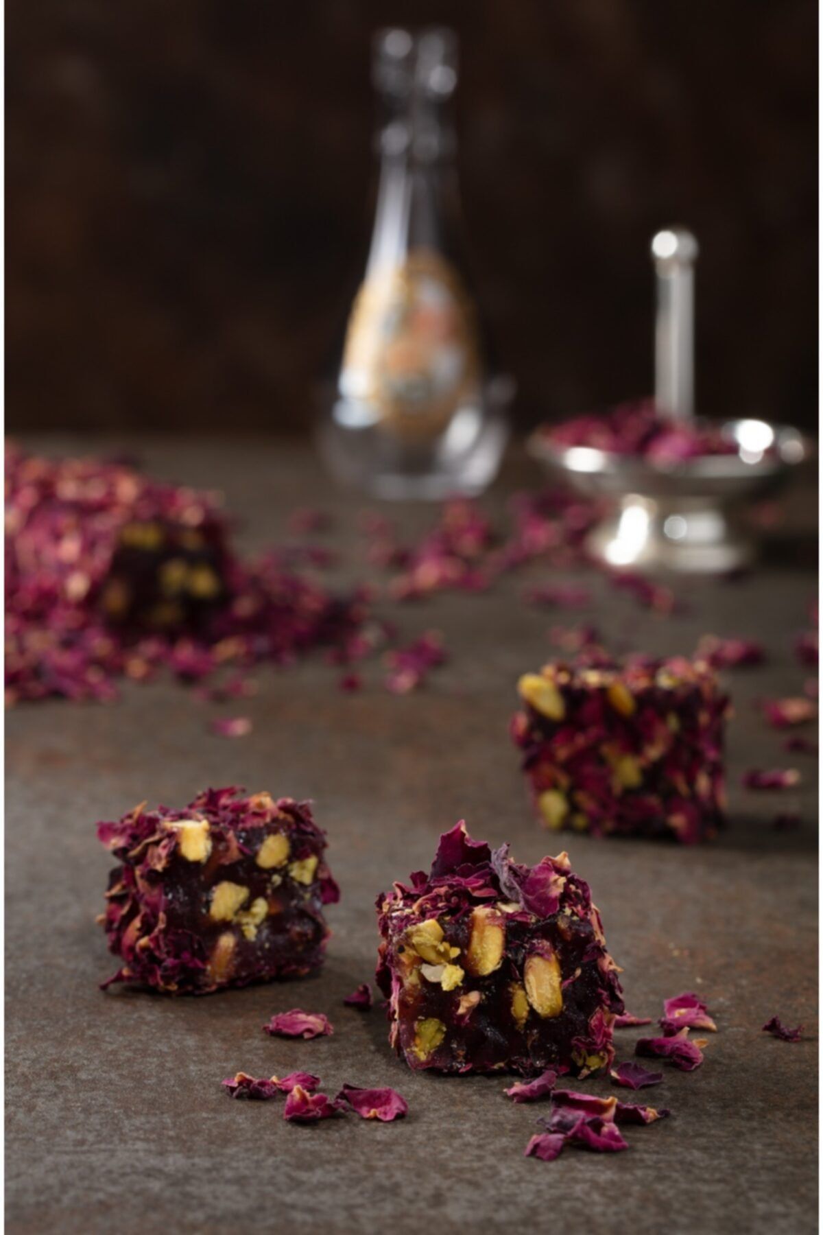 MEŞHUR SAFRANBOLU LOKUMCUSU Fitil Gül Yapraklı Nar Aromalı Fıstıklı Lokum 500 gr