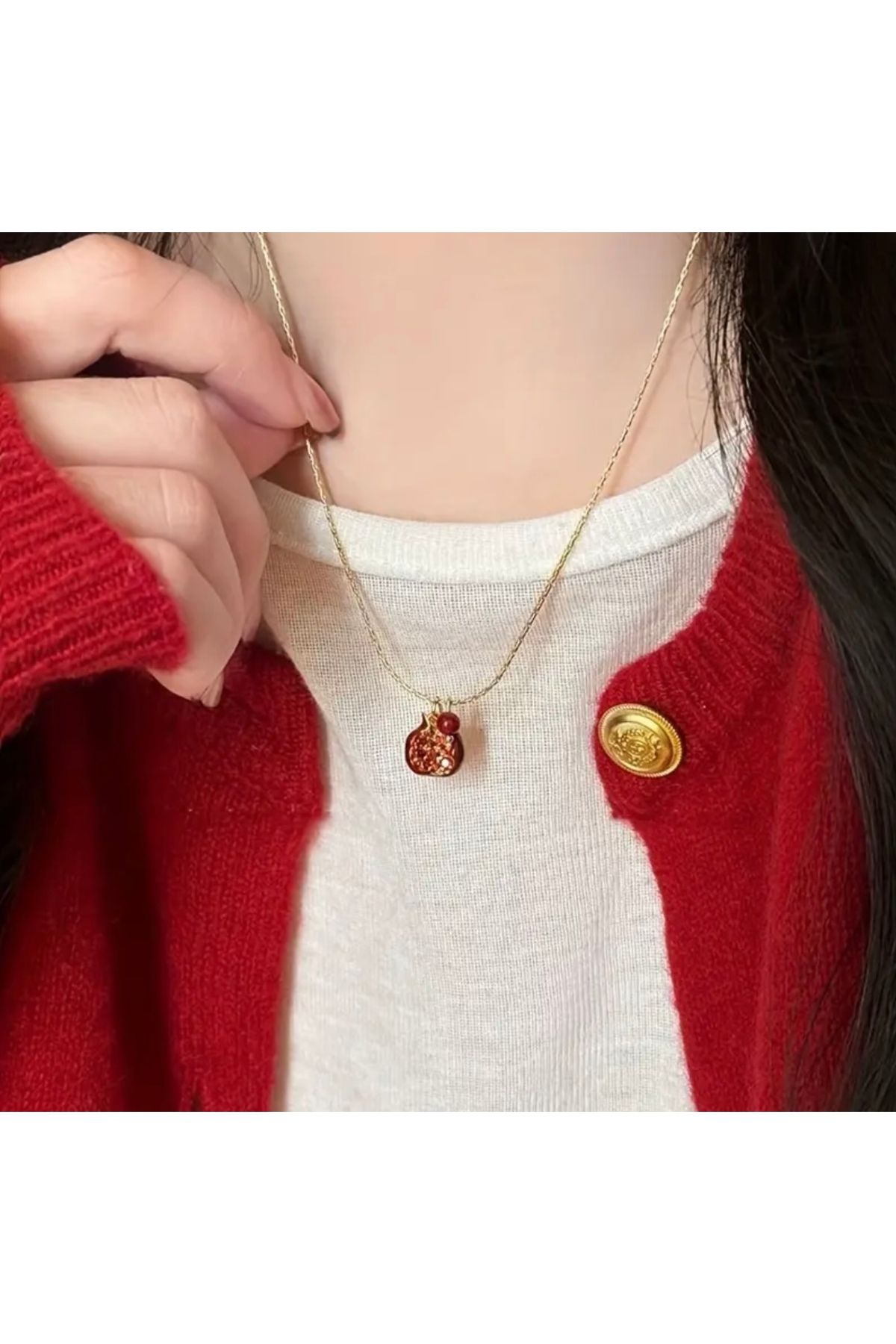 Methera Nar Figürlü Zarif Kadın Kolye – Şans ve Bereket Sembolü
