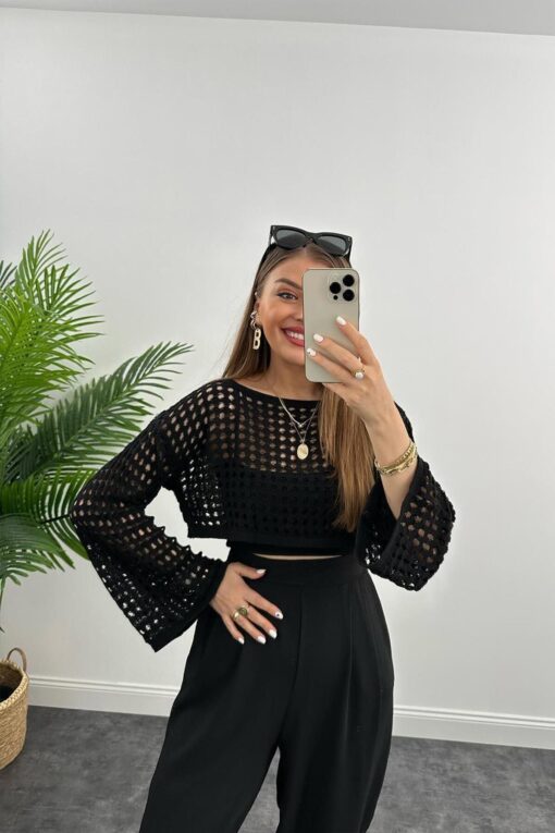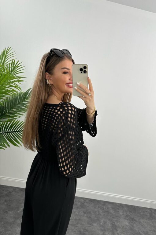 Meyga Butik Yazlık Ajurlu Kısa Triko Siyah