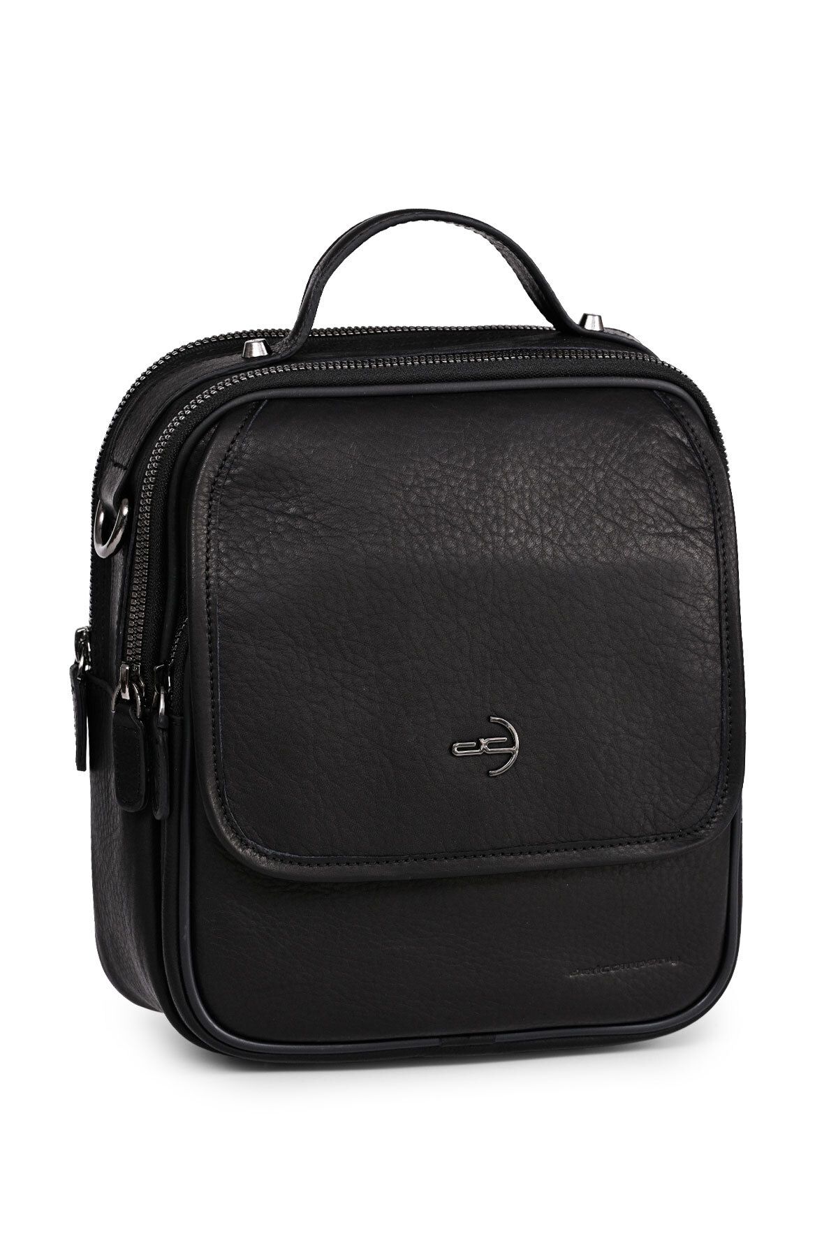 CüzCan Erkek Siyah Çelik Kasalı Hakiki Deri El Ve Omuz Çantası Ayarlanabilir Askılı( Orta Boy)