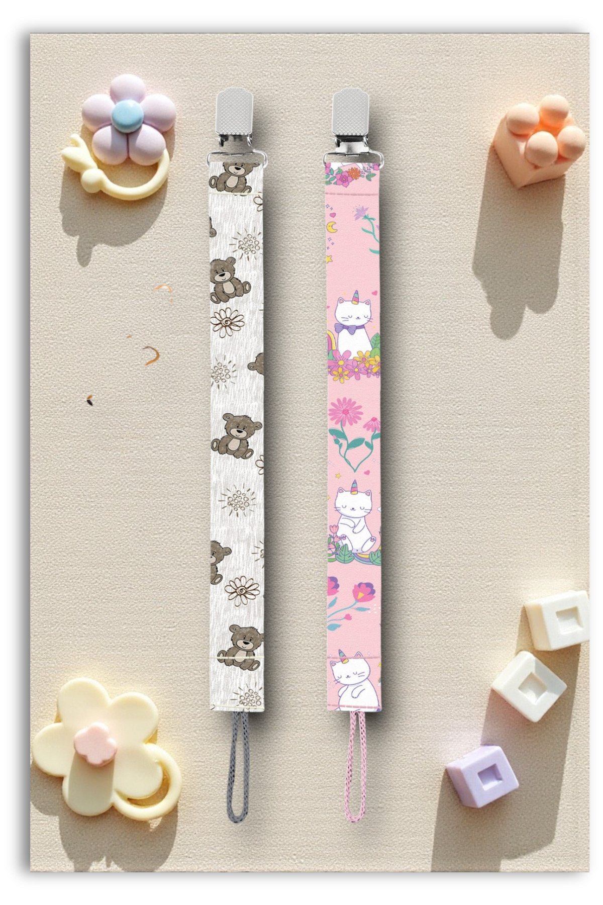 Mia Aurora 2li Set Emzik Askısı Emzik Zinciri Emzik Tutacağı Gri Ayıcık Pembe Unicorn Kedi BYI64107