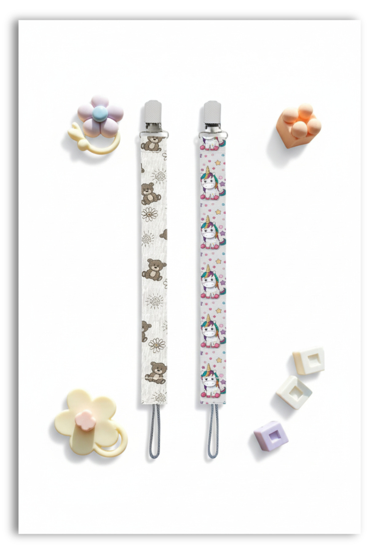 Mia Aurora 2li Set Emzik Askısı Emzik Zinciri Emzik Tutacağı Gri Ayıcık Unicorn BYI64081