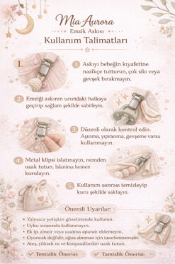 Zemze Baby İsimli Nakışlı Fular Emzik Zinciri 2’Li Set %100 Organik Müslin