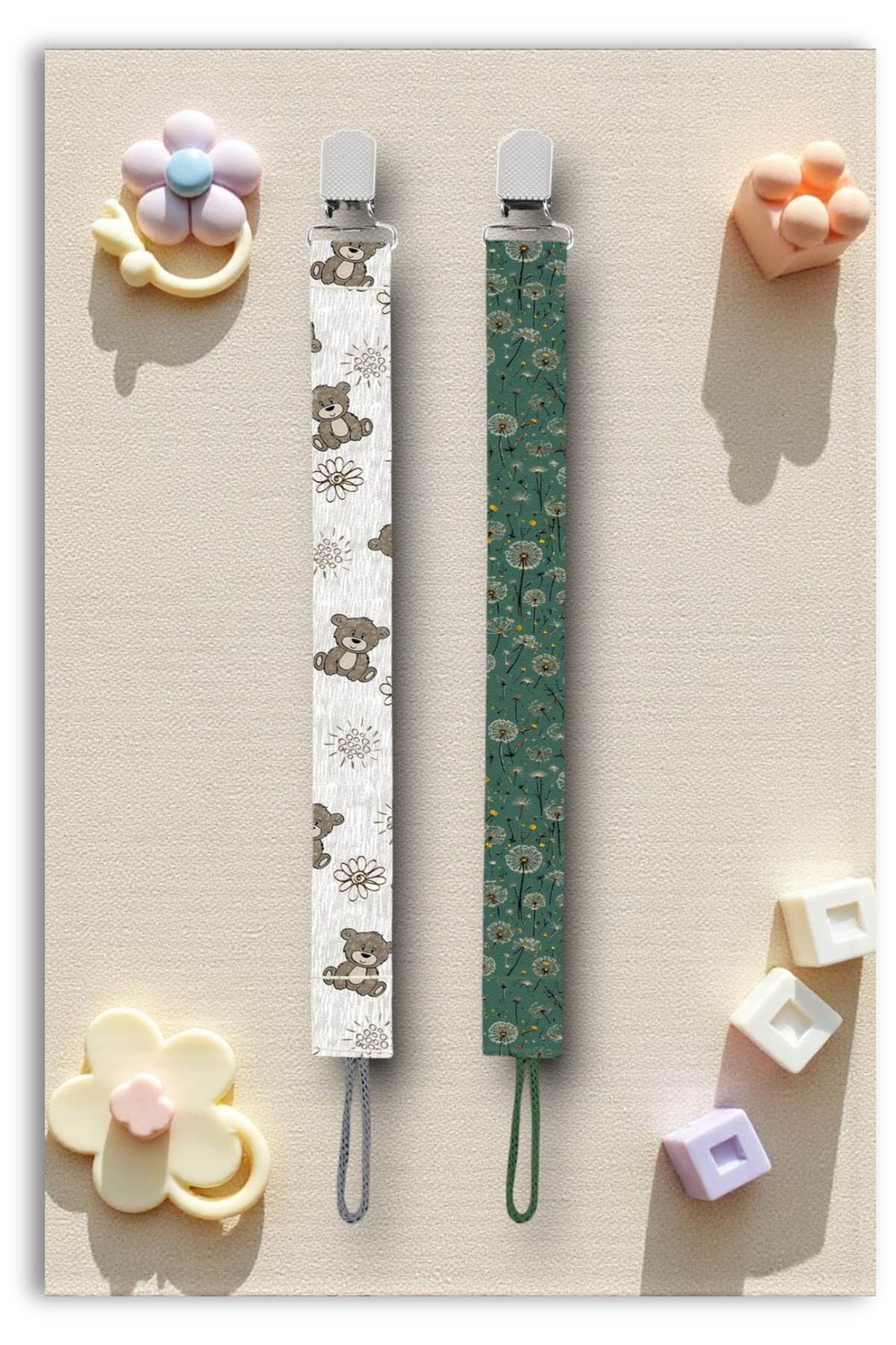 Mia Aurora 2li Set Emzik Askısı Emzik Zinciri Emzik Tutacağı Gri Ayıcık Yeşil Karahindiba BYI64103
