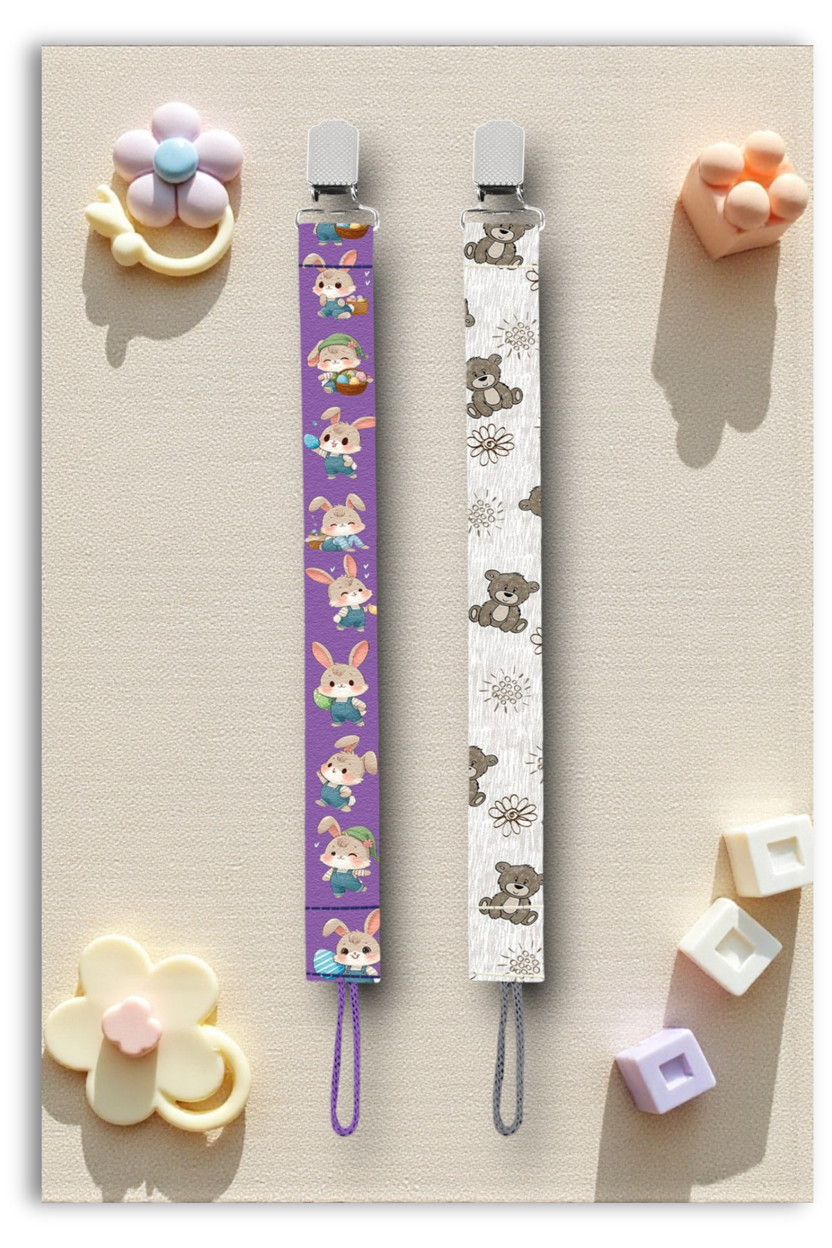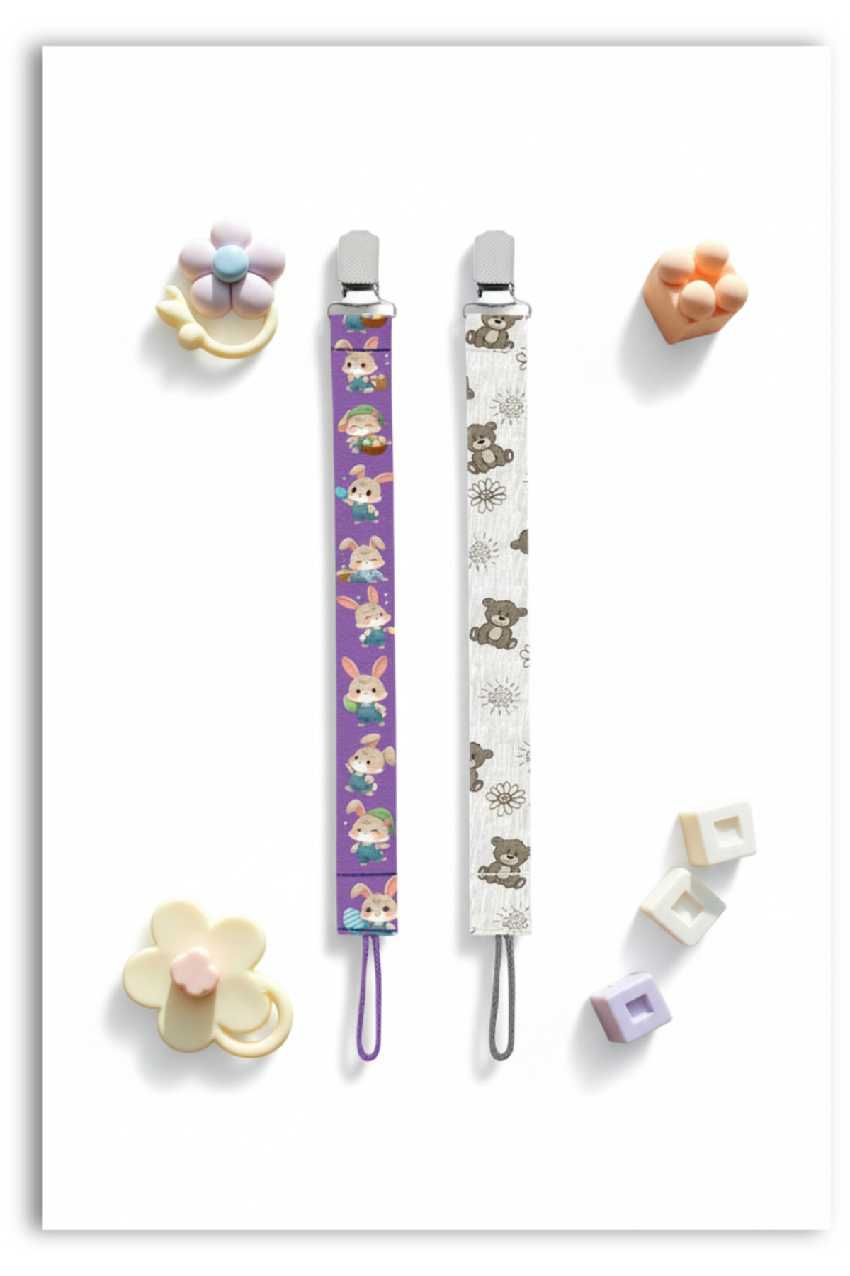 Mia Aurora 2li Set Emzik Askısı Emzik Zinciri Emzik Tutacağı Mor Tavşan Gri Ayıcık BYI58264