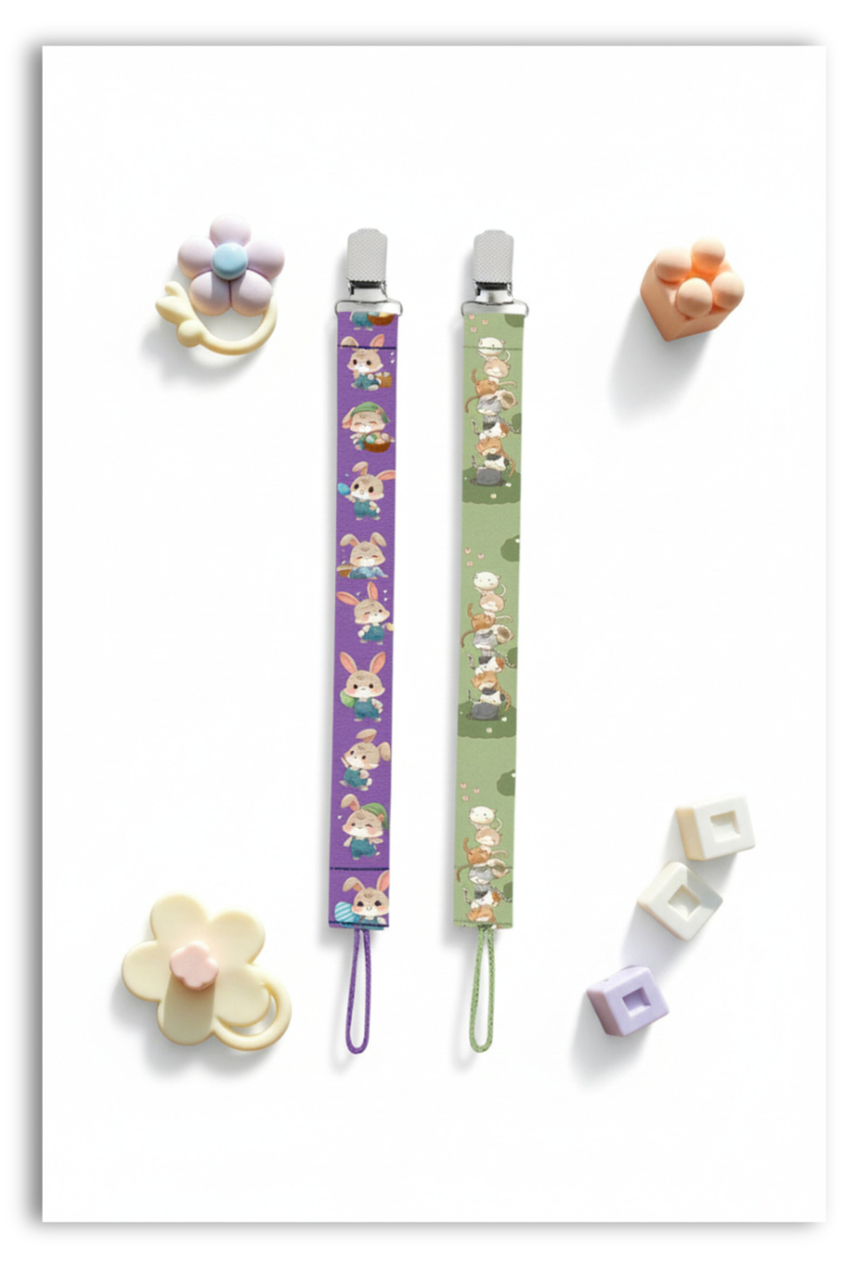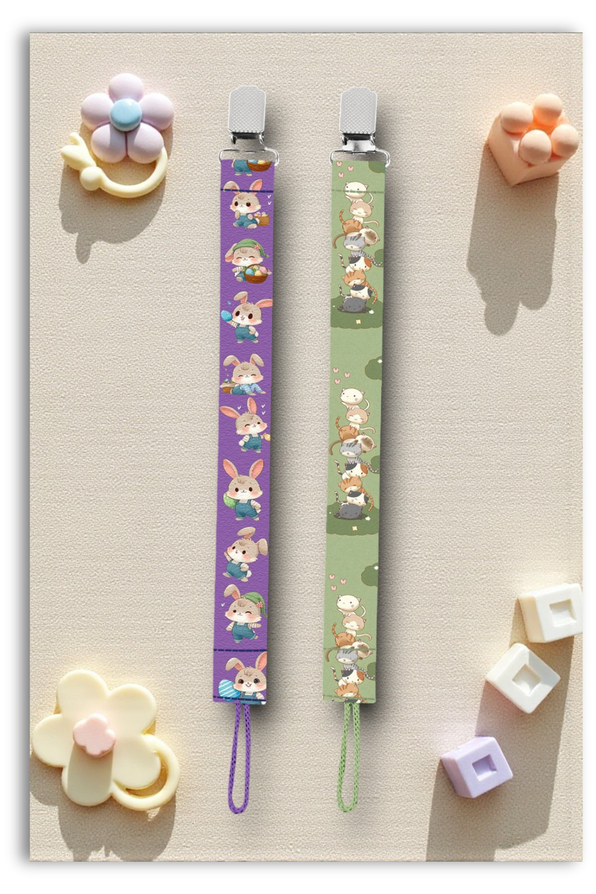 Mia Aurora 2li Set Emzik Askısı Emzik Zinciri Emzik Tutacağı Mor Tavşan Yeşil Kedi BYI64074