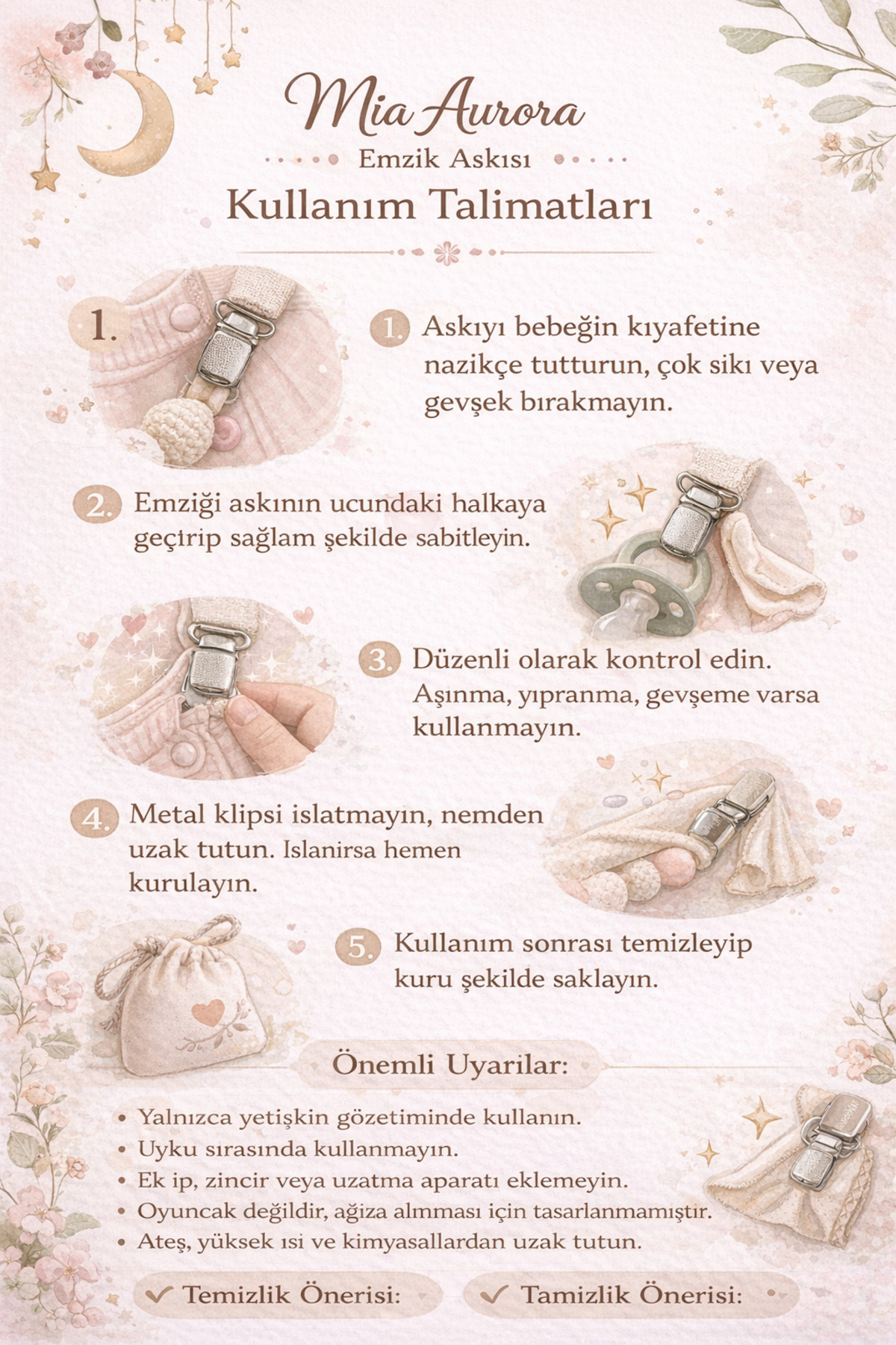 Mia Aurora 2li Set Emzik Askısı Emzik Zinciri Emzik Tutacağı Tavşan Ay Bulut Desenli Mor Pembe BYI64061 ürününü en uygun fiyata kozmetikara.com sitemizden sipariş verebilirsiniz.