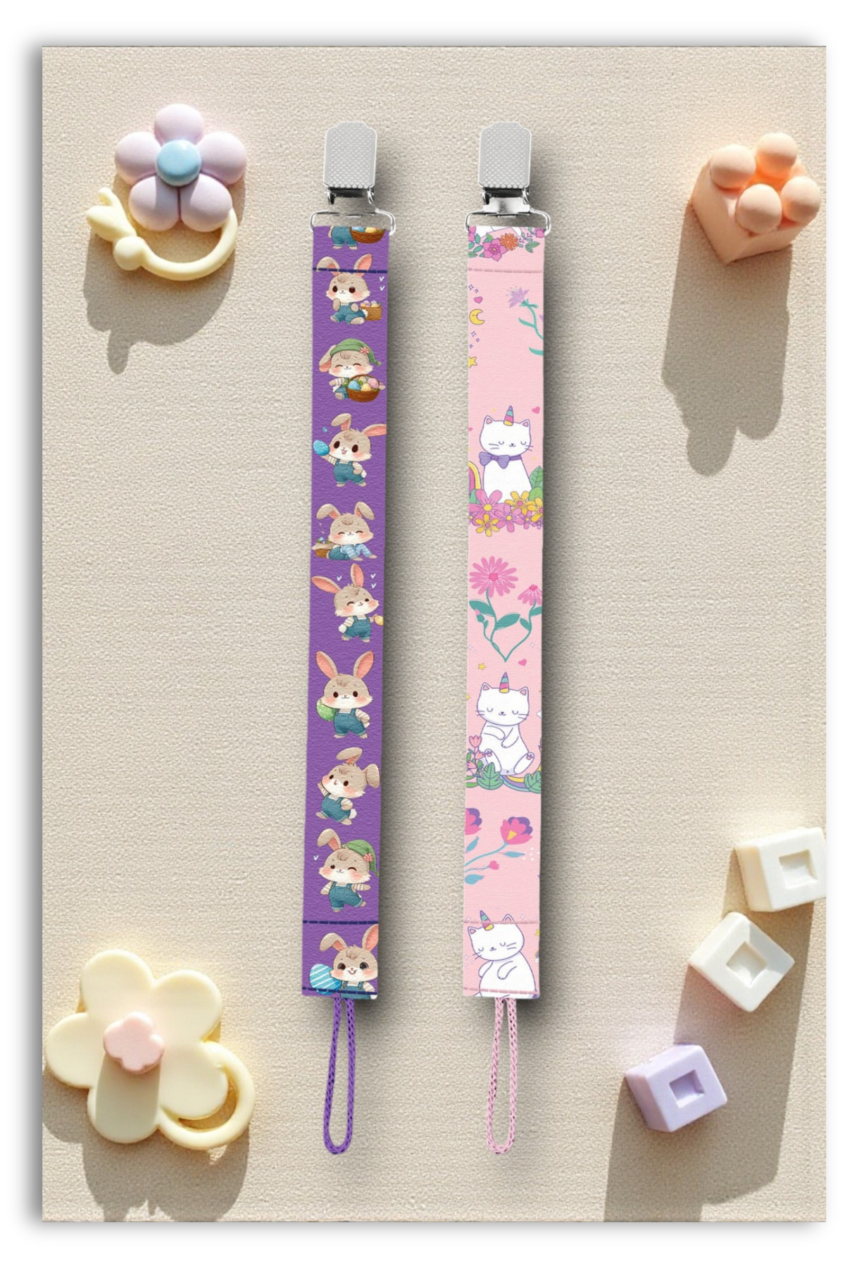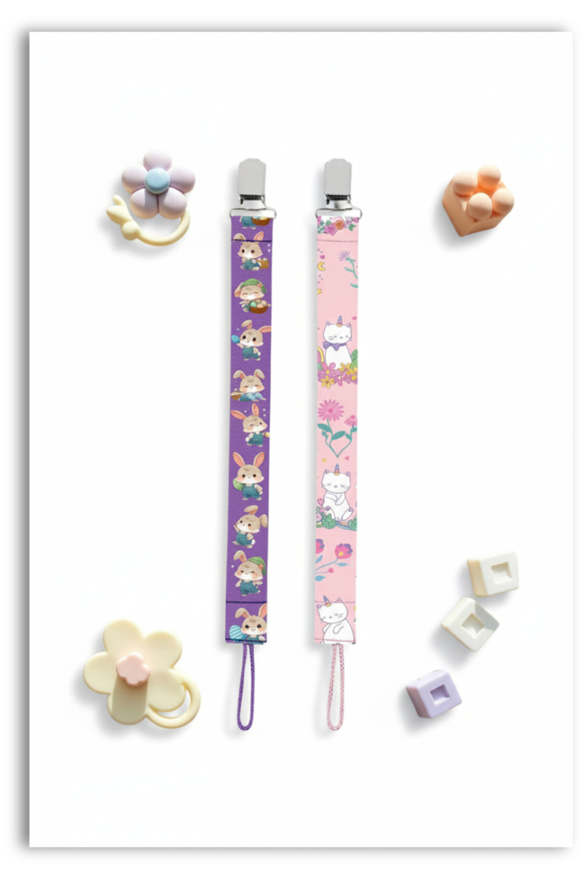 Mia Aurora 2li Set Emzik Askısı Emzik Zinciri Emzik Tutacağı Tavşan Mor Unicorn Kedi Pembe BYI60419