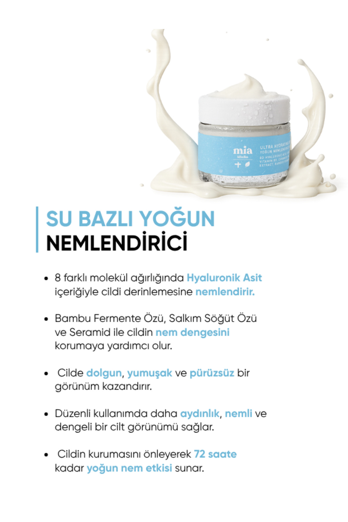 mia klinika 72 Saat Etkili Su Bazlı Yoğun Nemlendirici Yüz Kremi