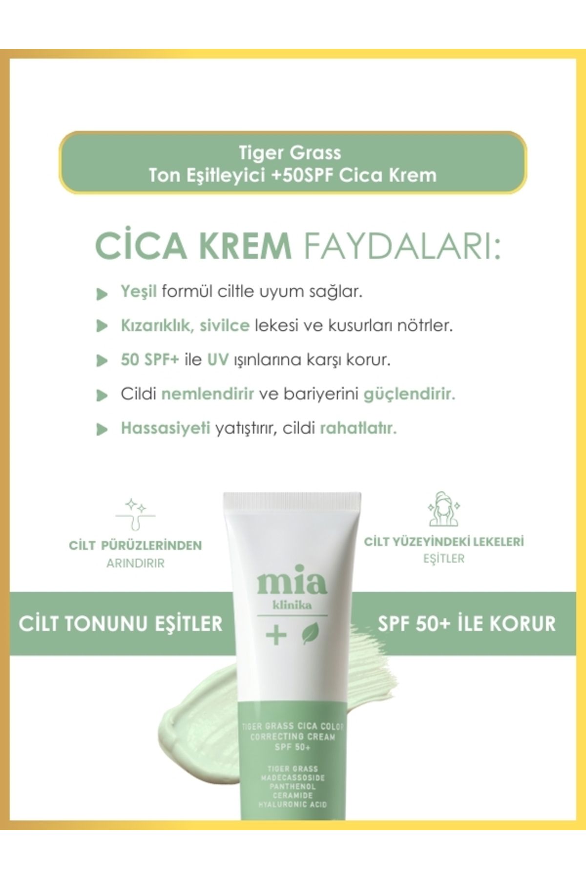 mia klinika Tiger Grass Ton Eşitleyici Kızarıklık Karşıtı 50 Spf Cica Krem 30 ml