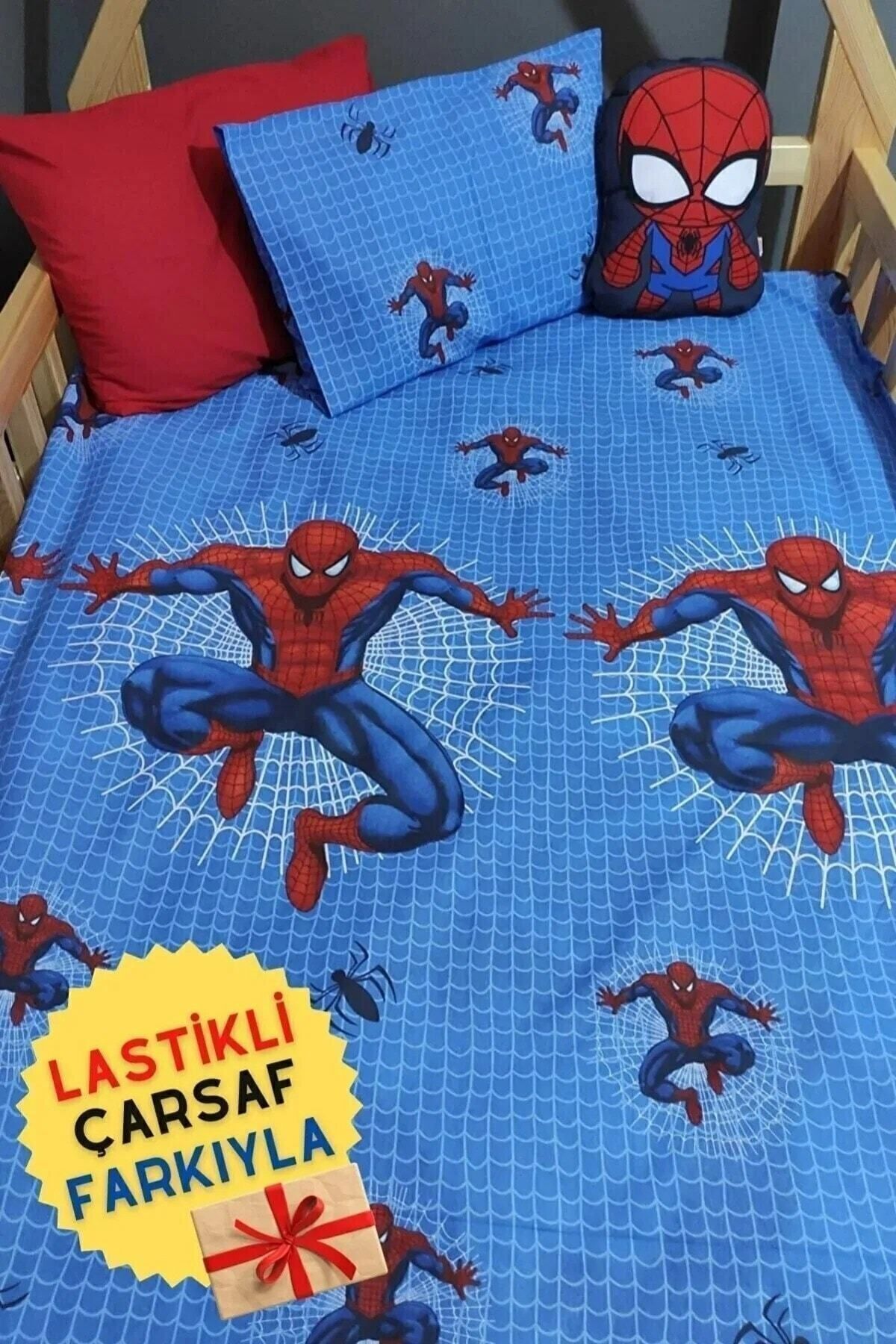mihriban Tek Kişilik Çocuk Desen Lastikli Çarşaflı Nevresim Takımı Örümcek 100×200 Cm 1 Yastık Kılıflı
