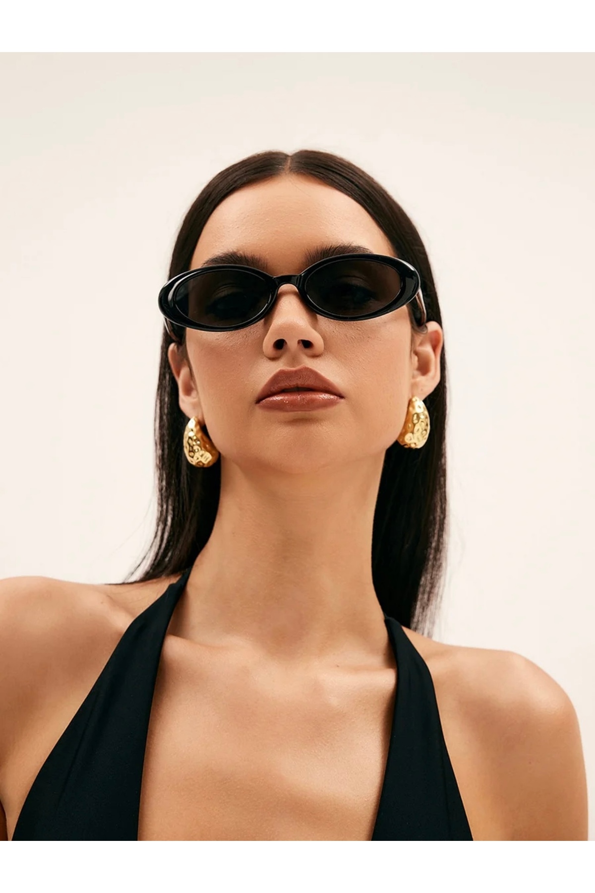 Nilu Moda Oval Tasarım Güneş Gözlüğü - Siyah Cam