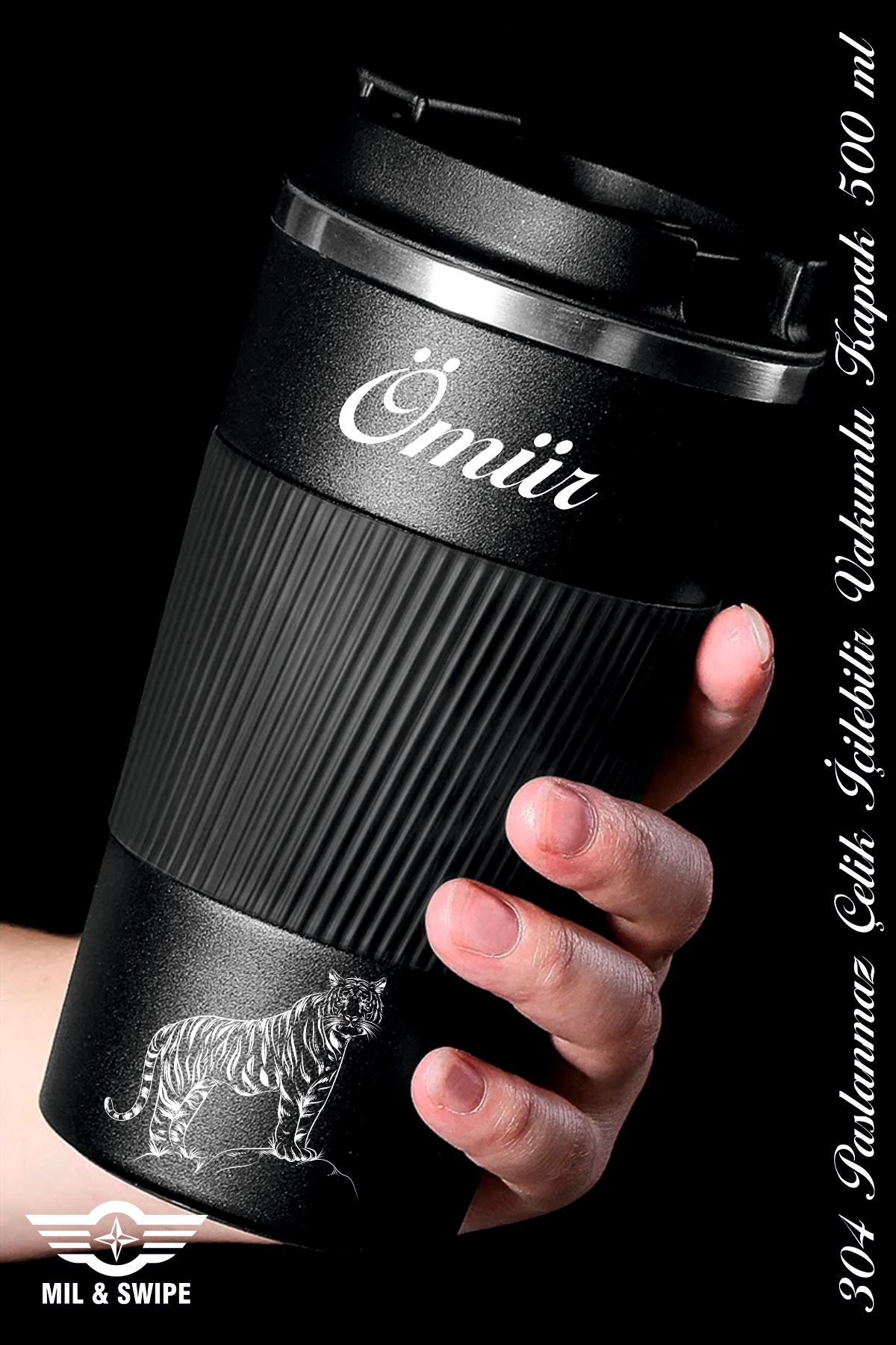 MIL SWIPE Kişiye Özel Isimli Baskılı Paslanmaz 304çelik Termos Bardak 500 Ml Termos Mug Kupa Araçkahveçayms549