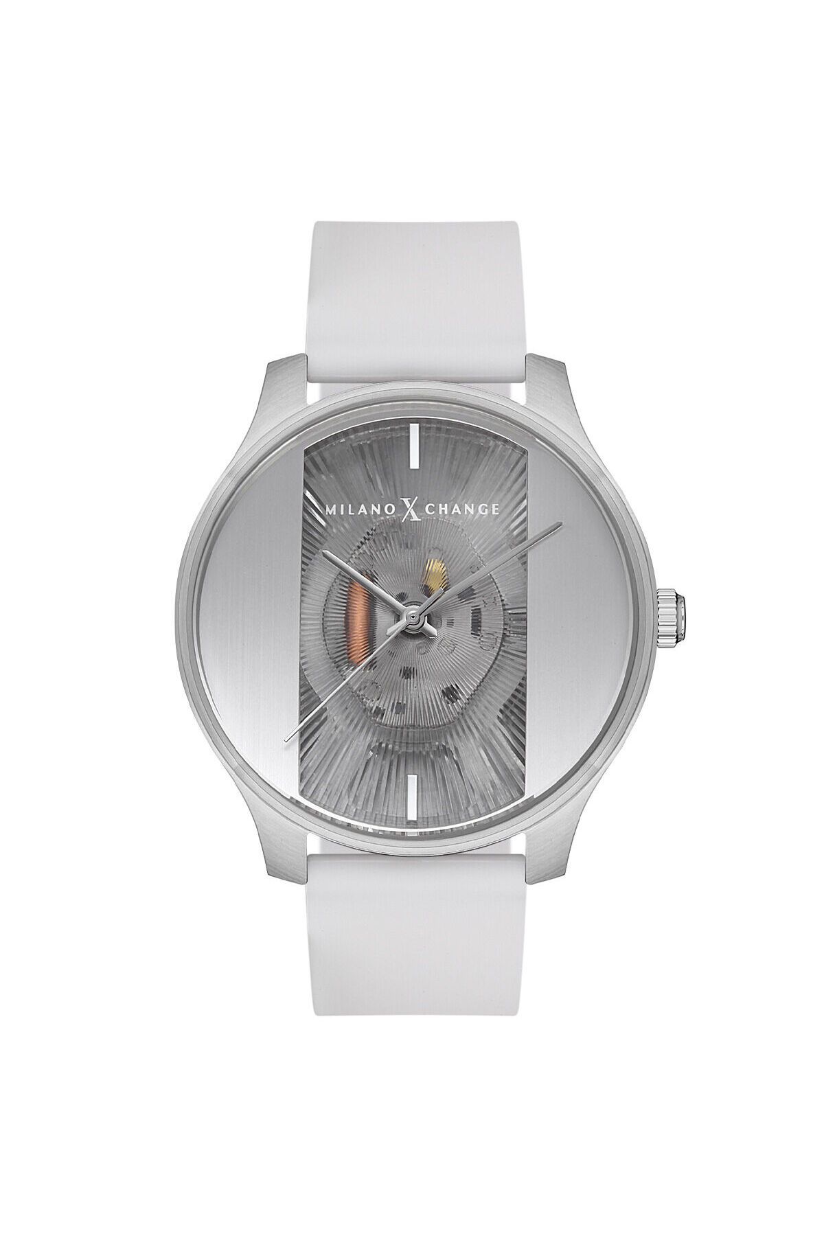 CaseThickness:12 mm WaterProof:3 ATM CaseDiameter:43 mm DialType:Analog StrapLanyardColor:Beyaz KasaMateryali:Çelik Yaş Grubu:Erkek Gender:Erkek CategoryName:Erkek Klasik Saat DialColor:Gümüş Tonu Style:Klasik Saatler CaseColor:Metalik Gri BrandName:Milano X Change GlassProperty:Mineral Technology:Quartz StrapLanyardProperty:Silikon KadranTasi:Yok Calendar:Yok Kronometre:Yok CaseStone:Yok Alarm:Yok DialStone:Yok CaseShape:Yuvarlak