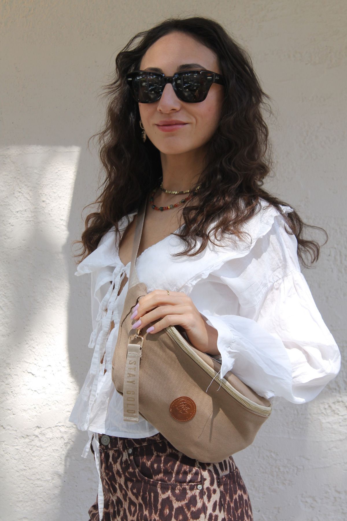 %100 Pamuk Kanvas kumaştan üretilen Stay Gold bel/omuz çantamız günlük hayatınızda her zaman kullanmak isteyeceğiniz şık ve fonksiyonel bir yardımcı olacak. Minimalist tasarımı ile her kıyafetinize uyum sağlayacak ve geniş iç hacmi ile ihtiyacınız olan her şeyi sığdırabileceksiniz.