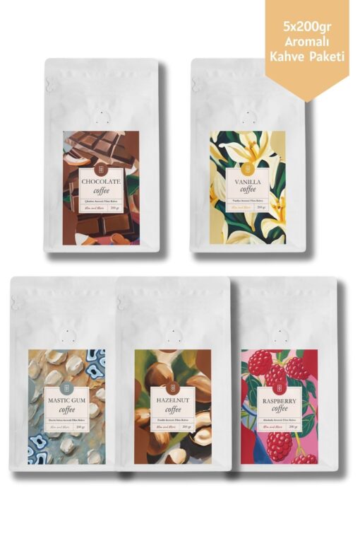 Mim and More 5 x 200 Gr – Chocolate&Vanilla&Mastic Gum&Hazelnut&Raspberry Coffee Filtre Kahve 5’li Set