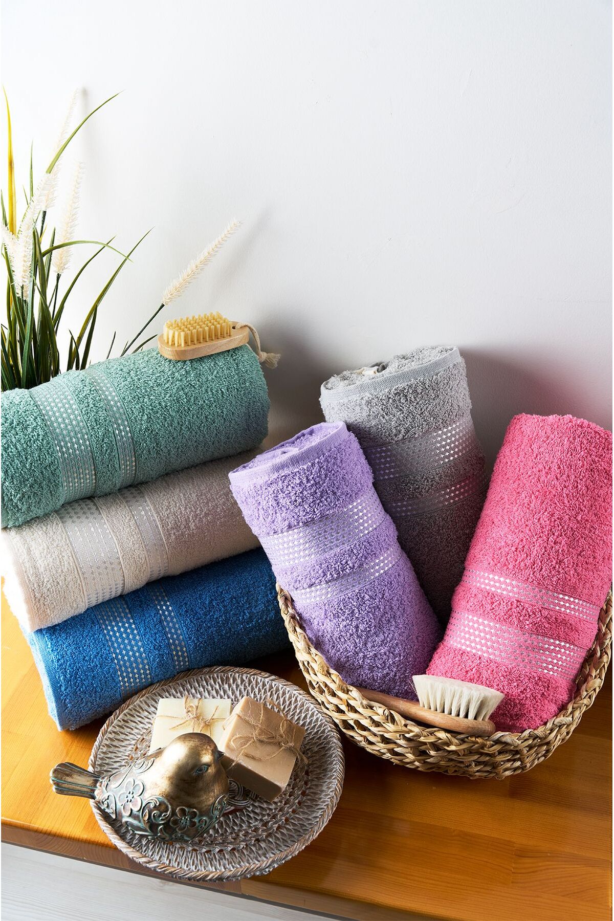 Özdilek Elissa Havlu 6 Adet - Krem Pembe Taş Gri Bej Beya