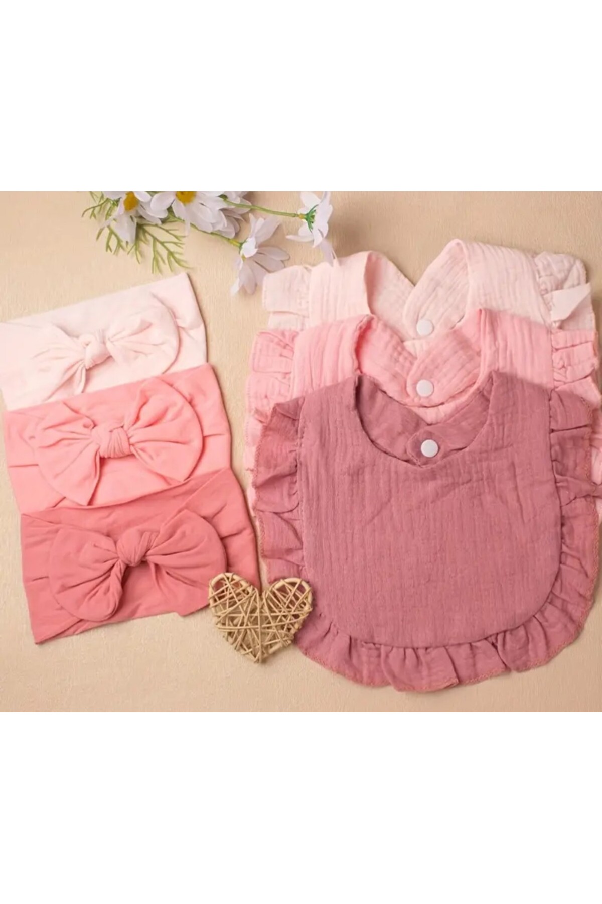 MİNİSSTORE Bebek muslin mama önlüğü bandana set